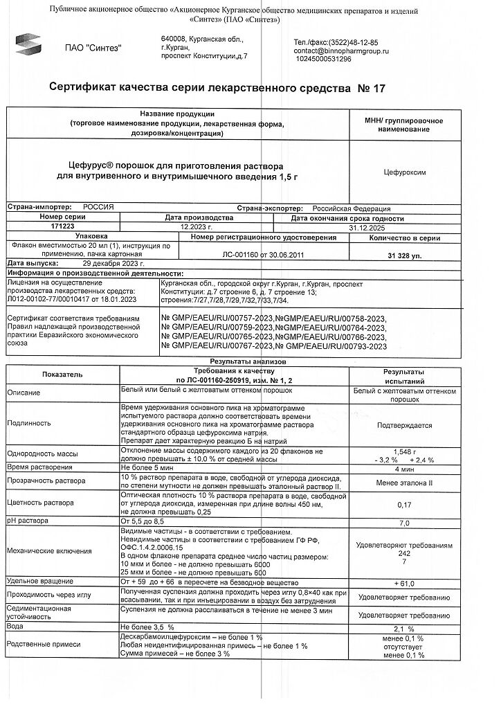 • 📒 Подробная инструкция по применению Цефурус порошок д/приг раствора для в/в и в/м введ 1,5 г фл 1 шт