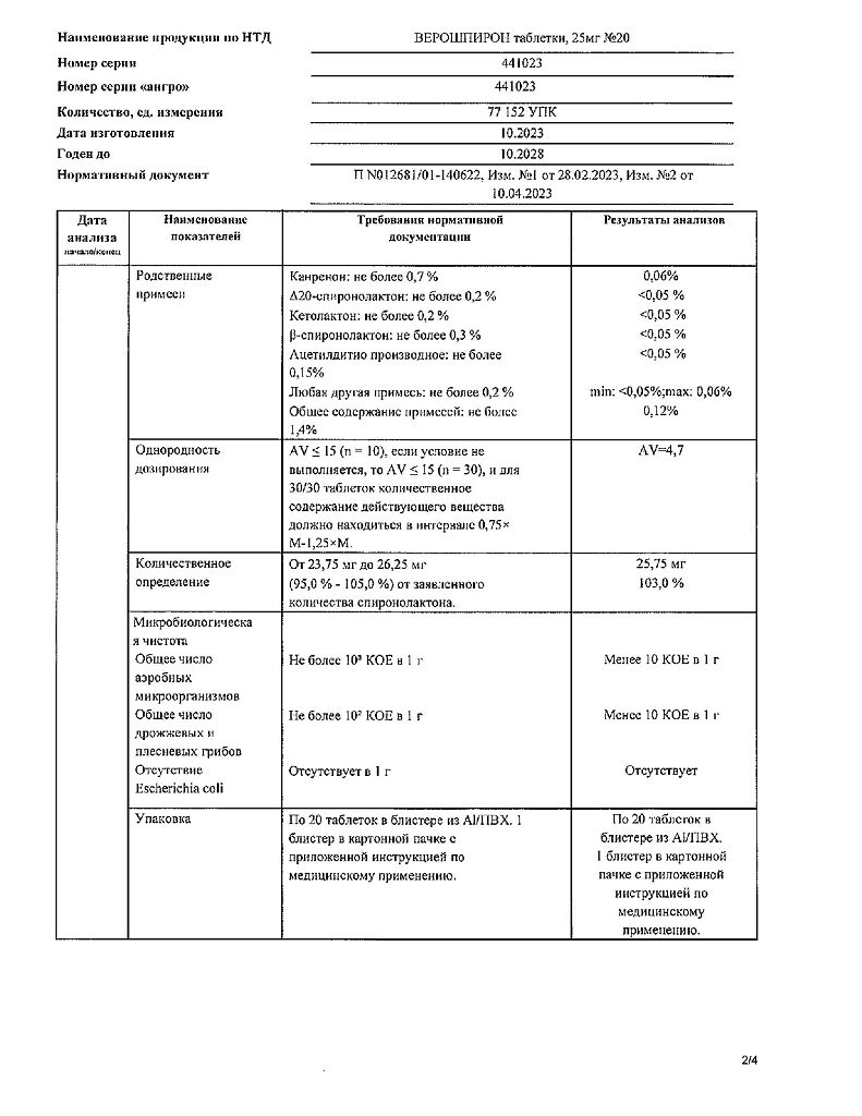 • 📲 Цена на Верошпирон таблетки 25 мг 20 шт ниже в нашем приложении