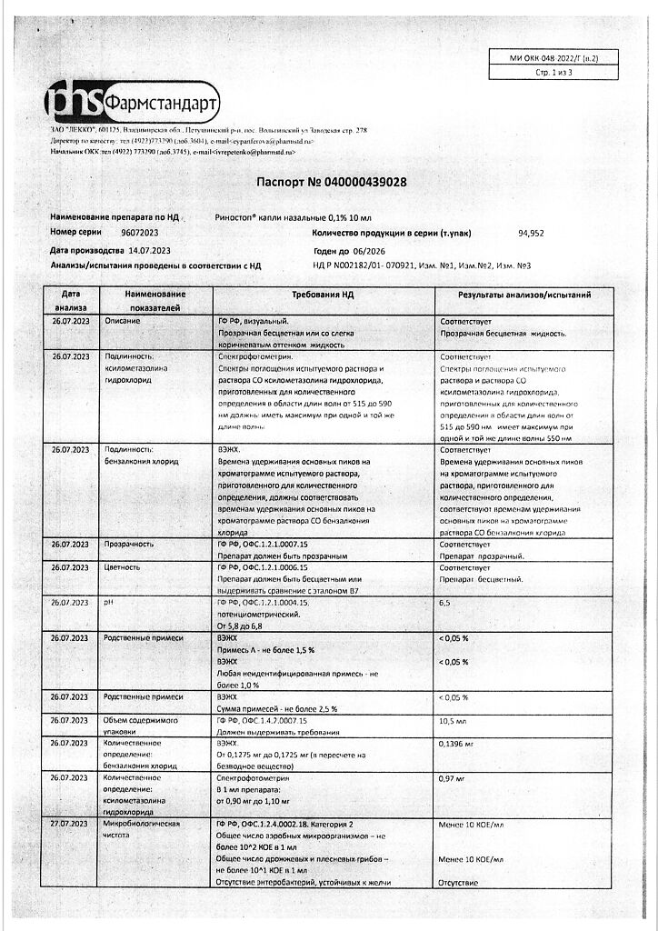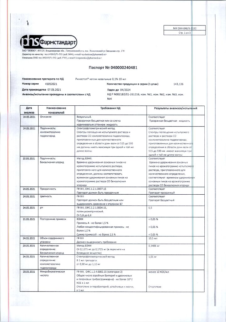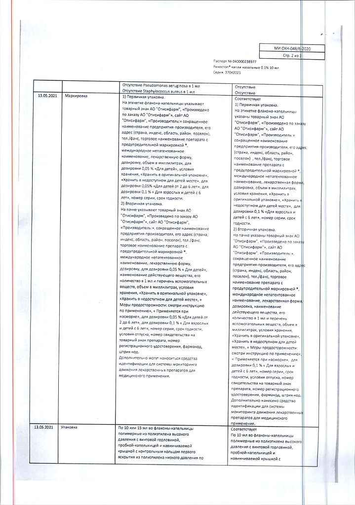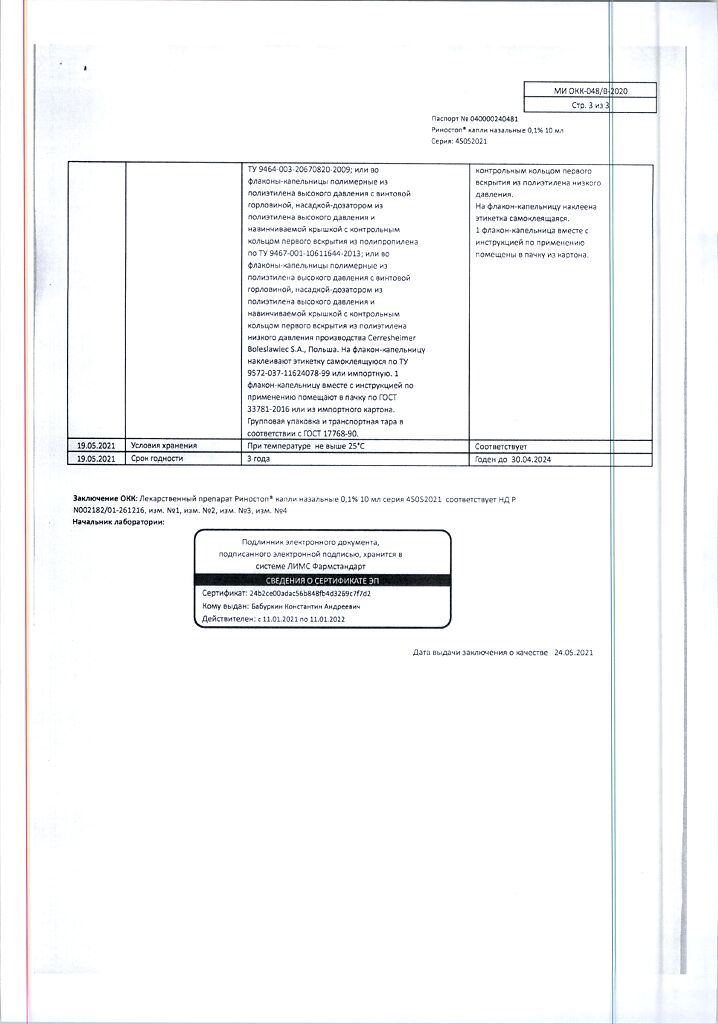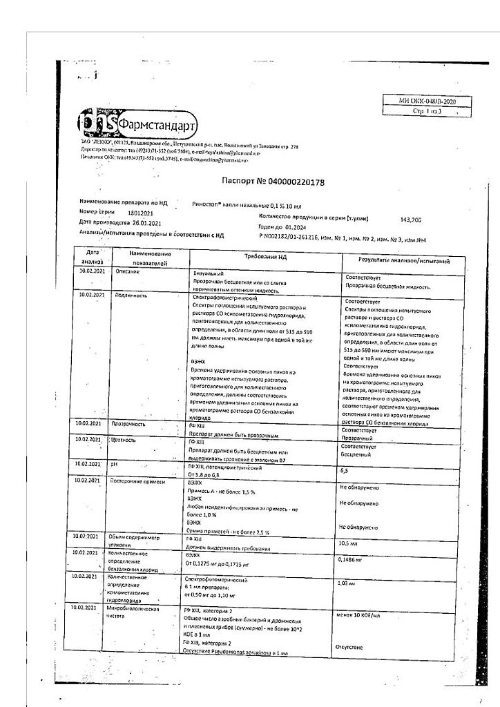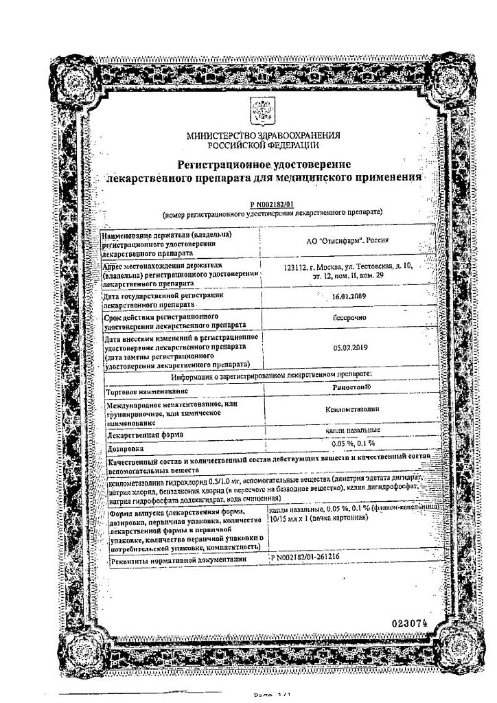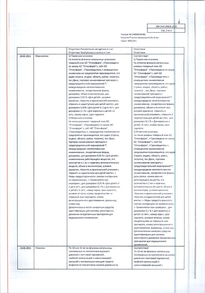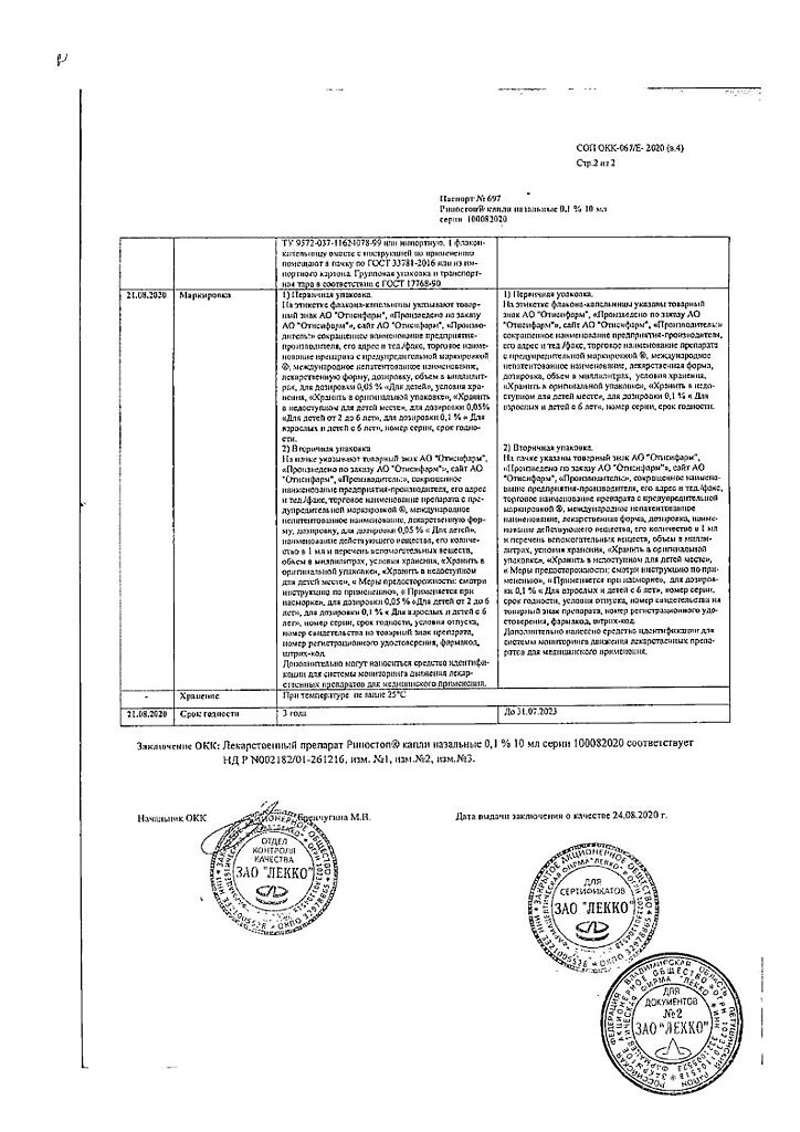 Документы Риностоп капли назальные 0,1 % фл-кап 10 мл 1 шт