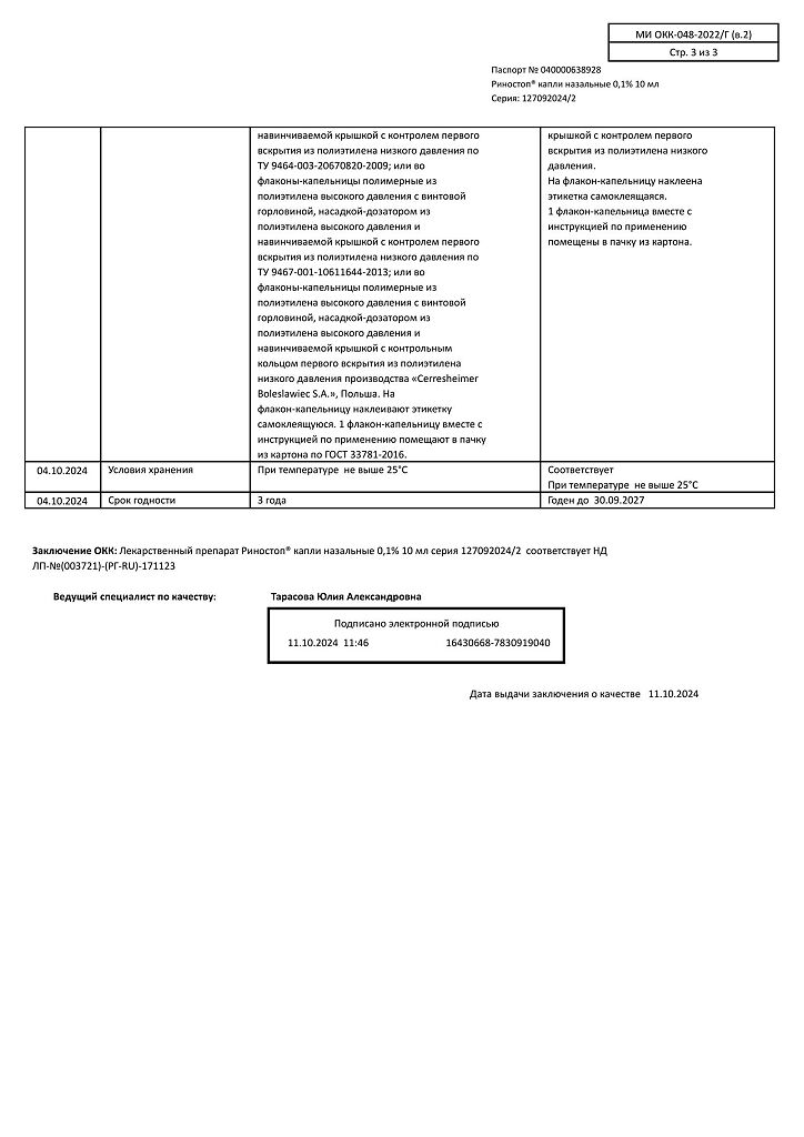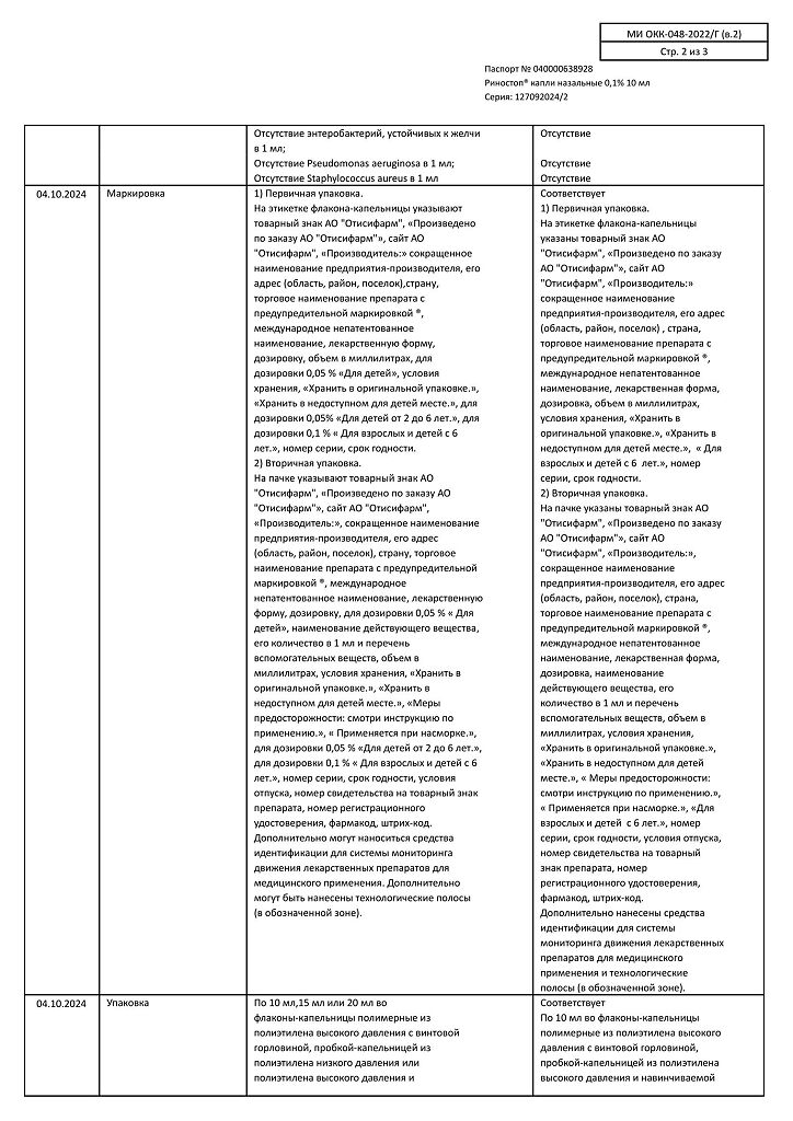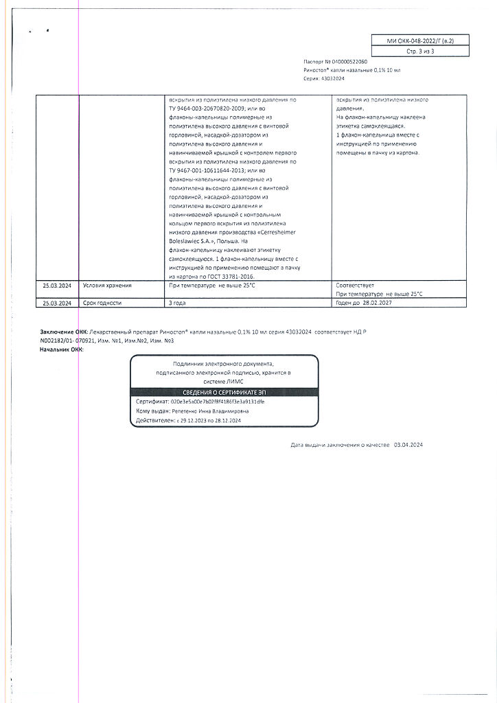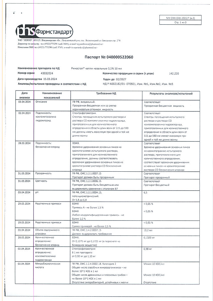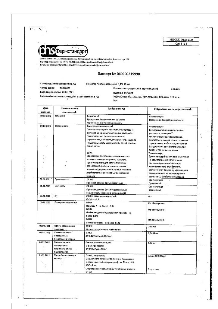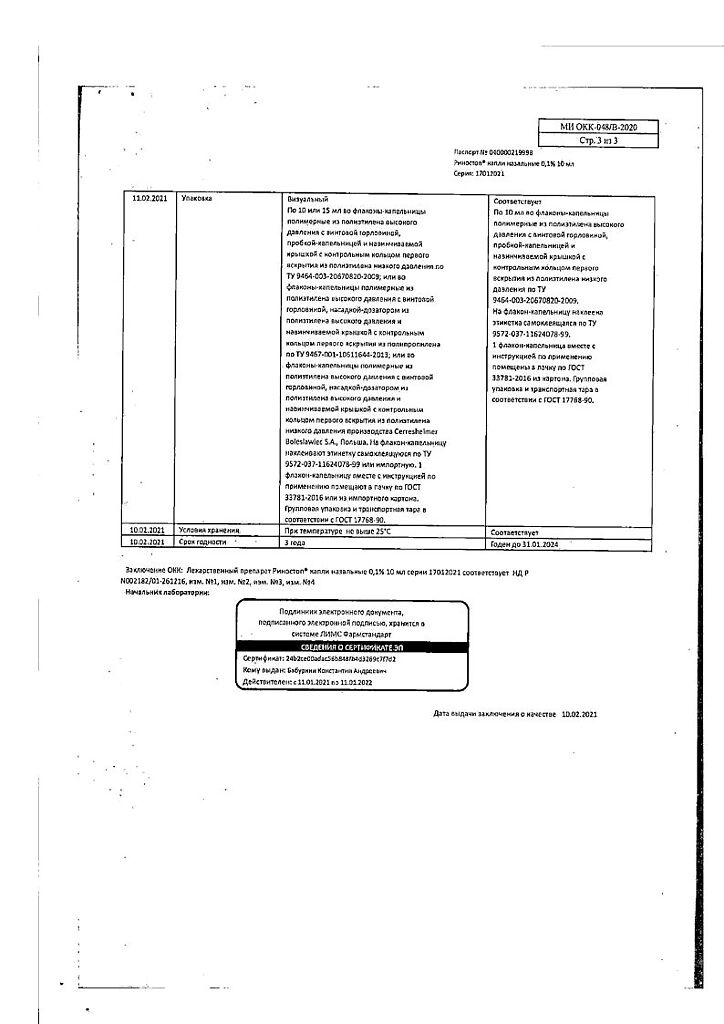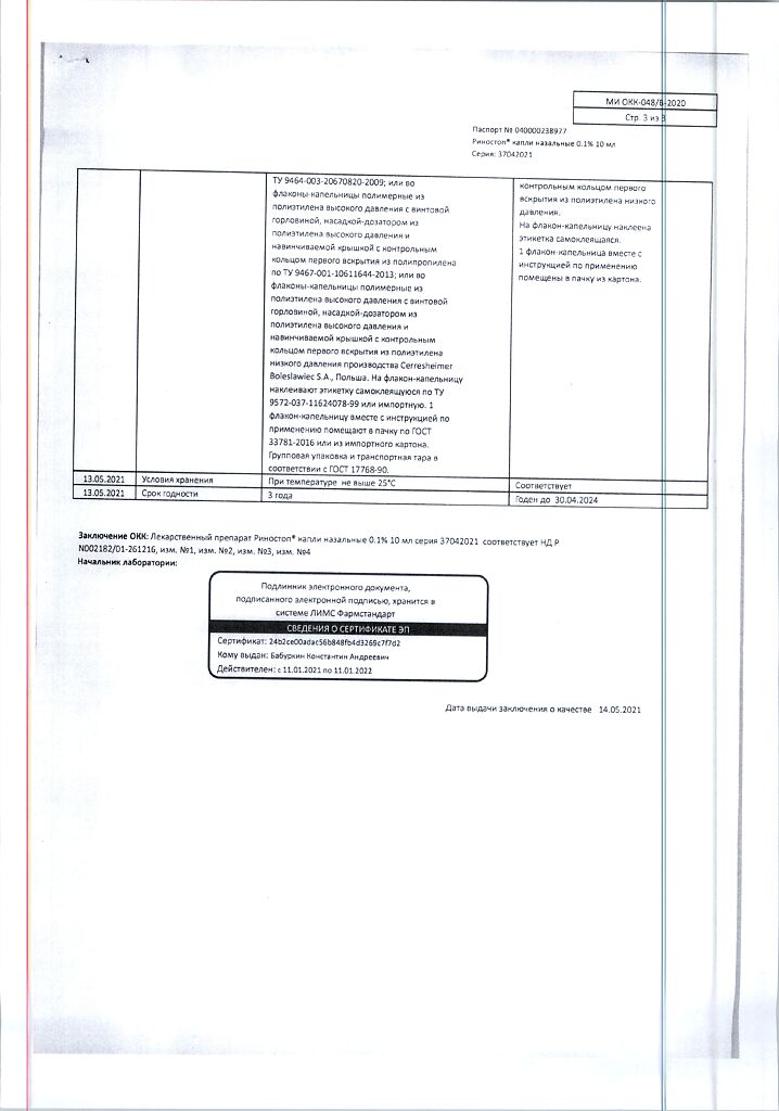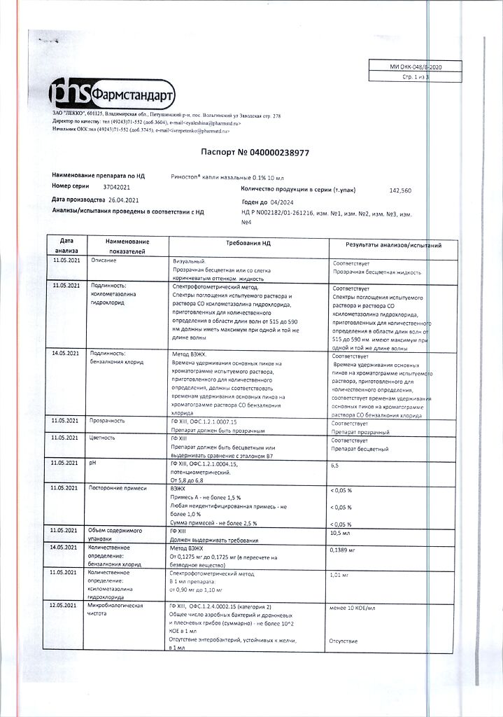 Документы Риностоп капли назальные 0,1 % фл-кап 10 мл 1 шт