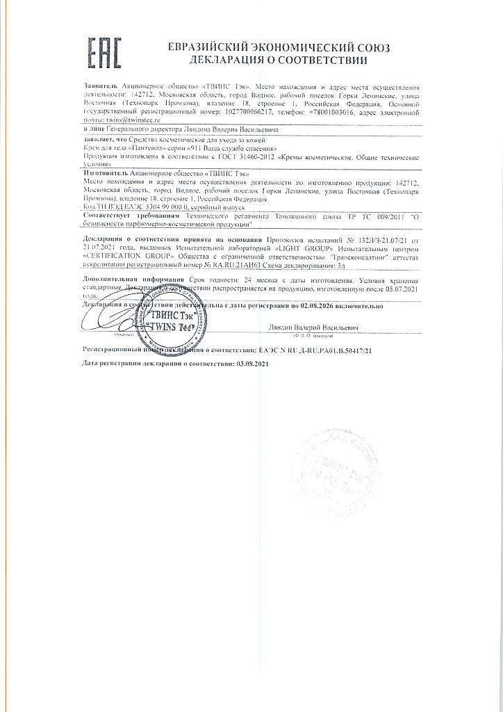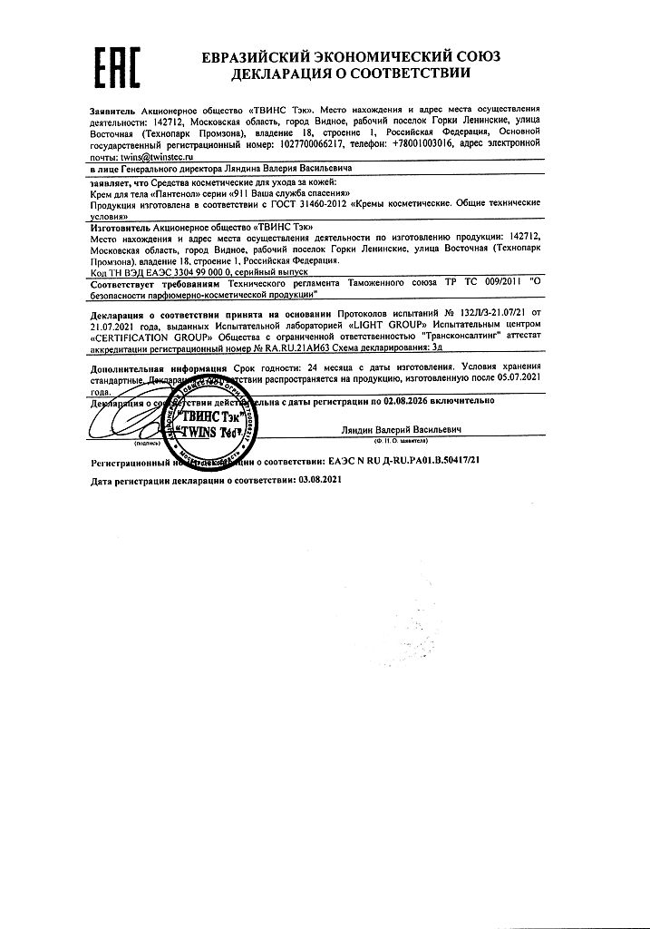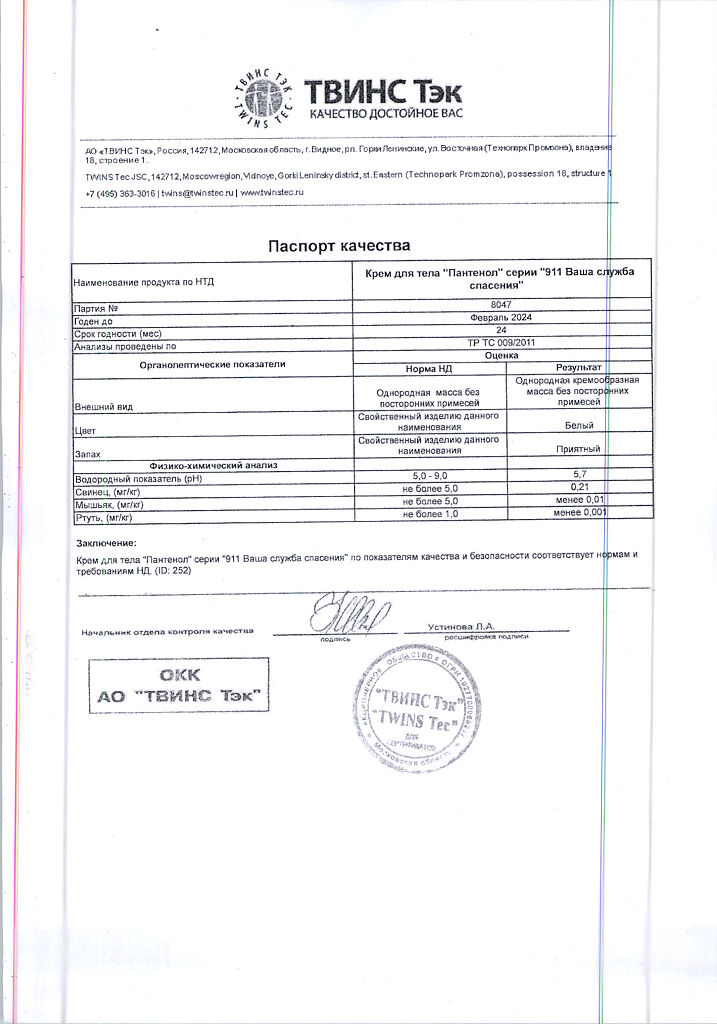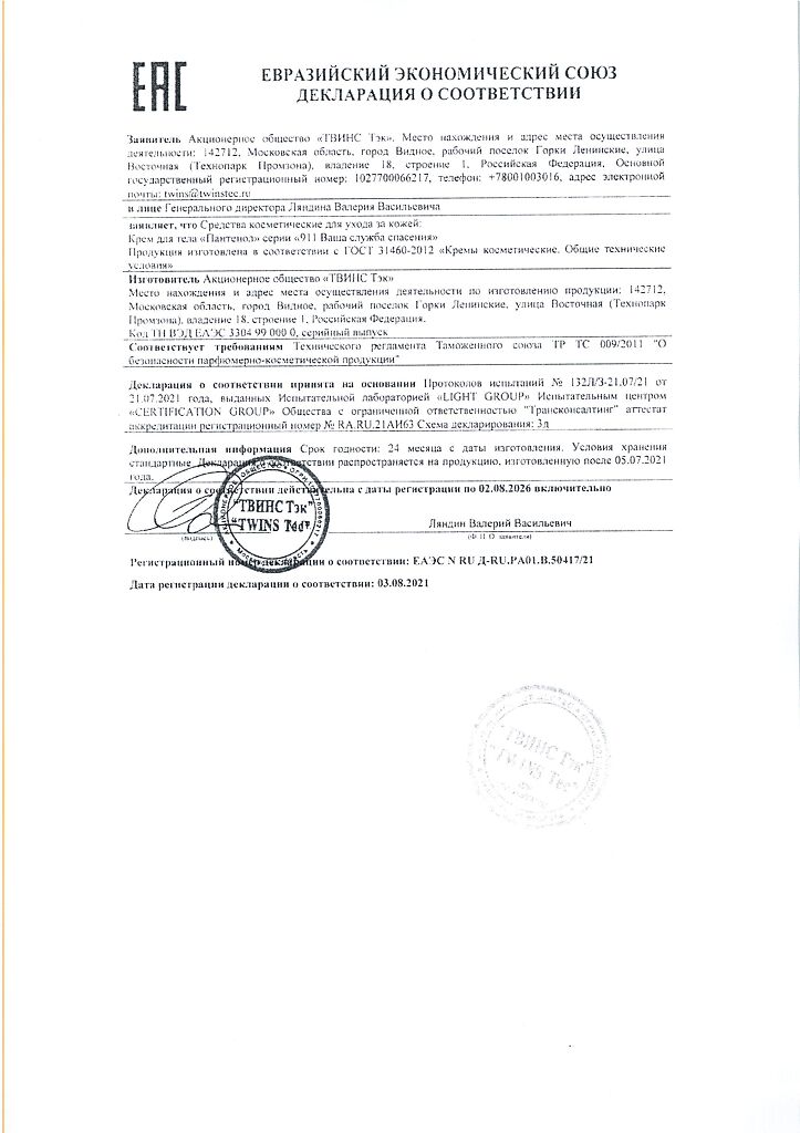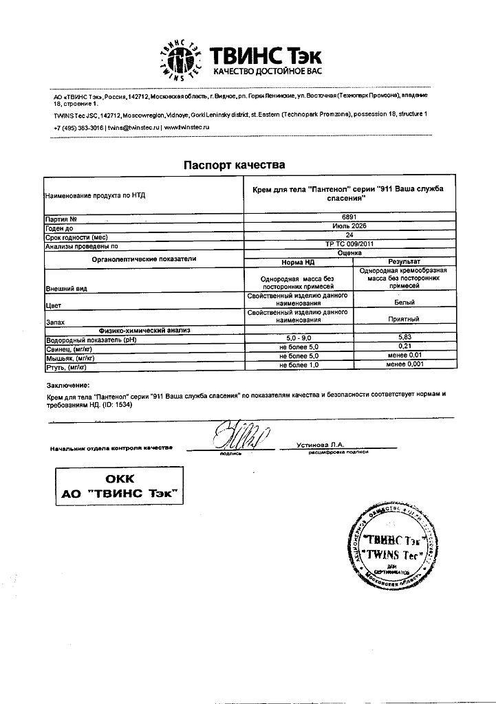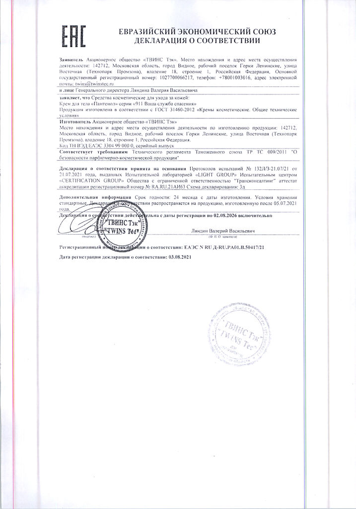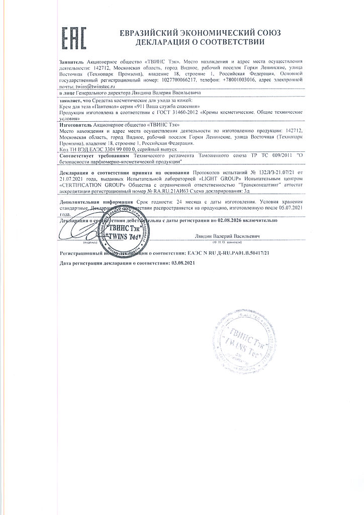 • 📒 Подробная инструкция по применению 911 Пантенол крем для тела 50 мл 1 шт