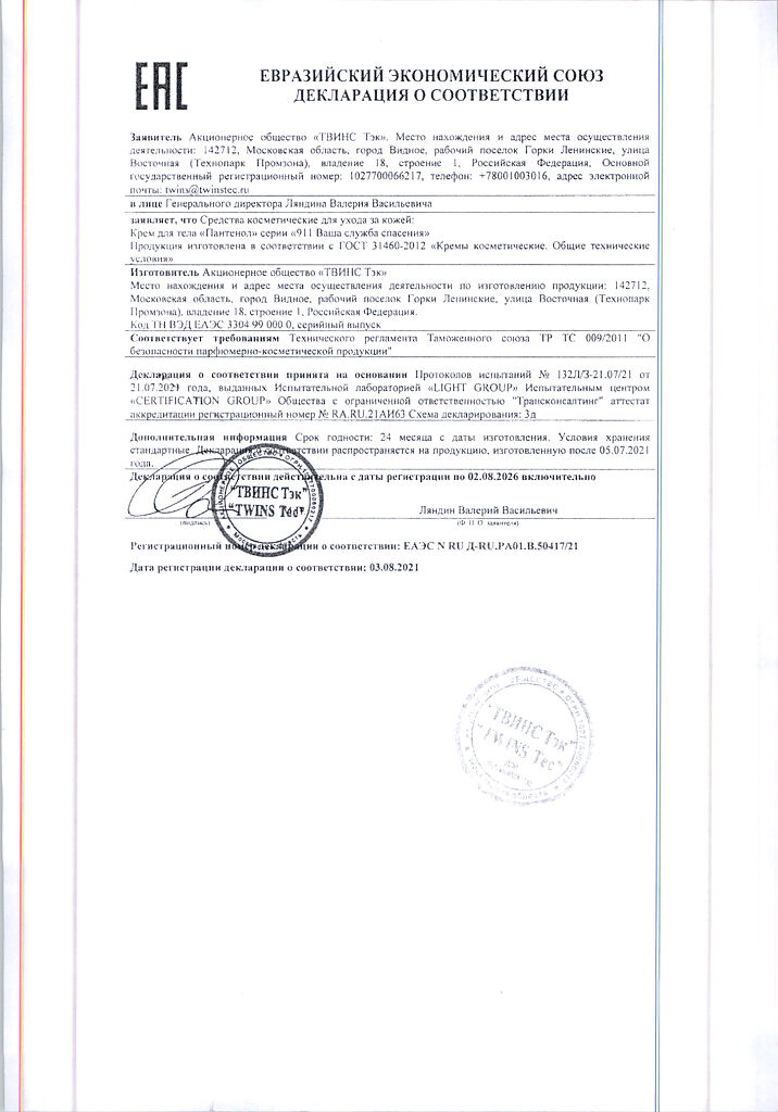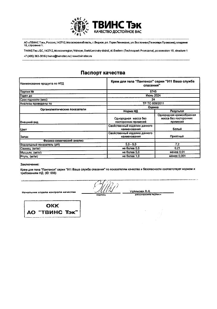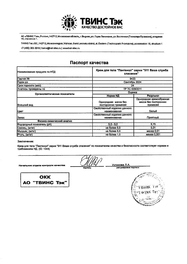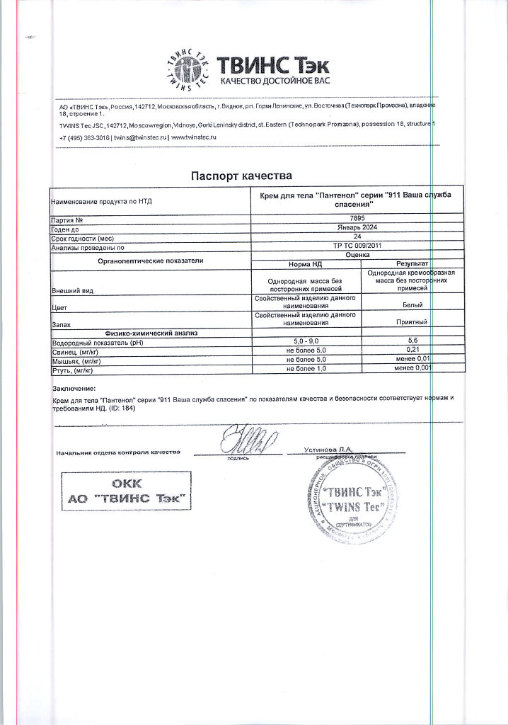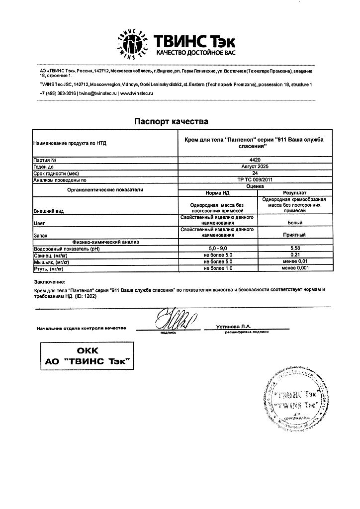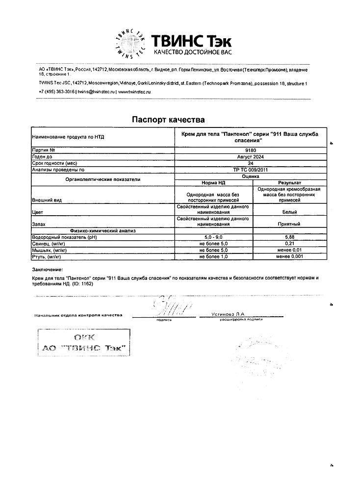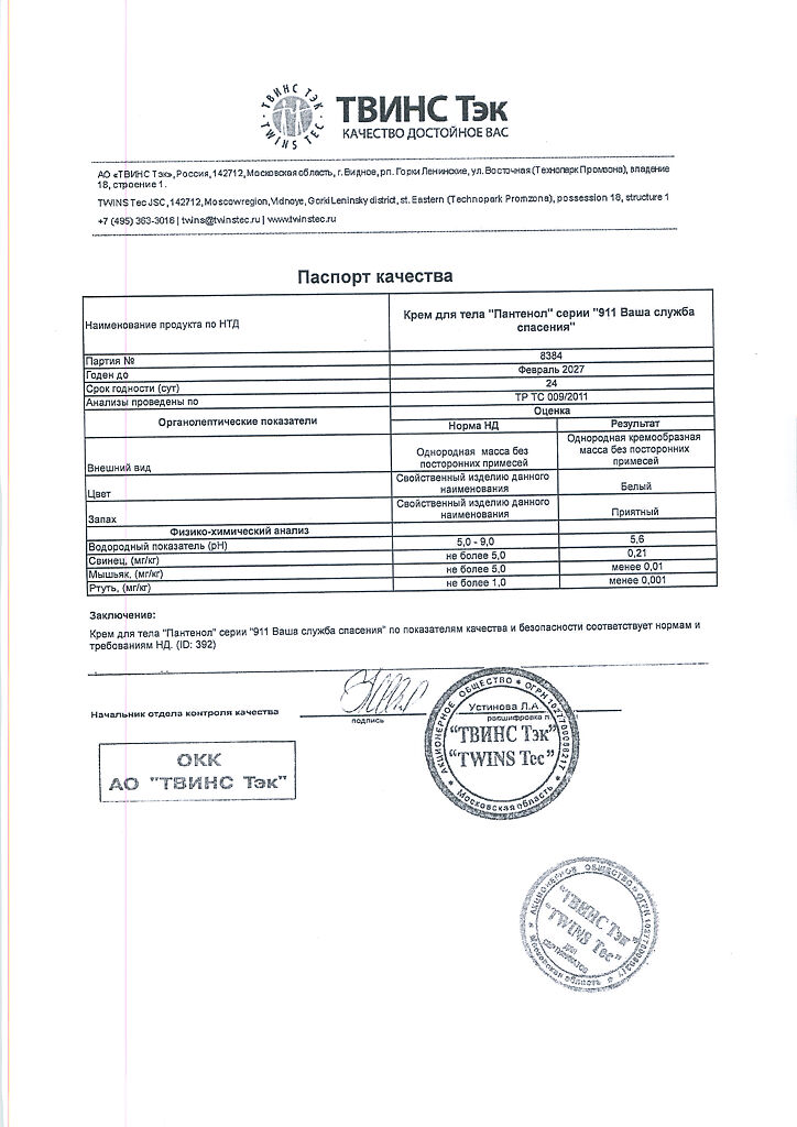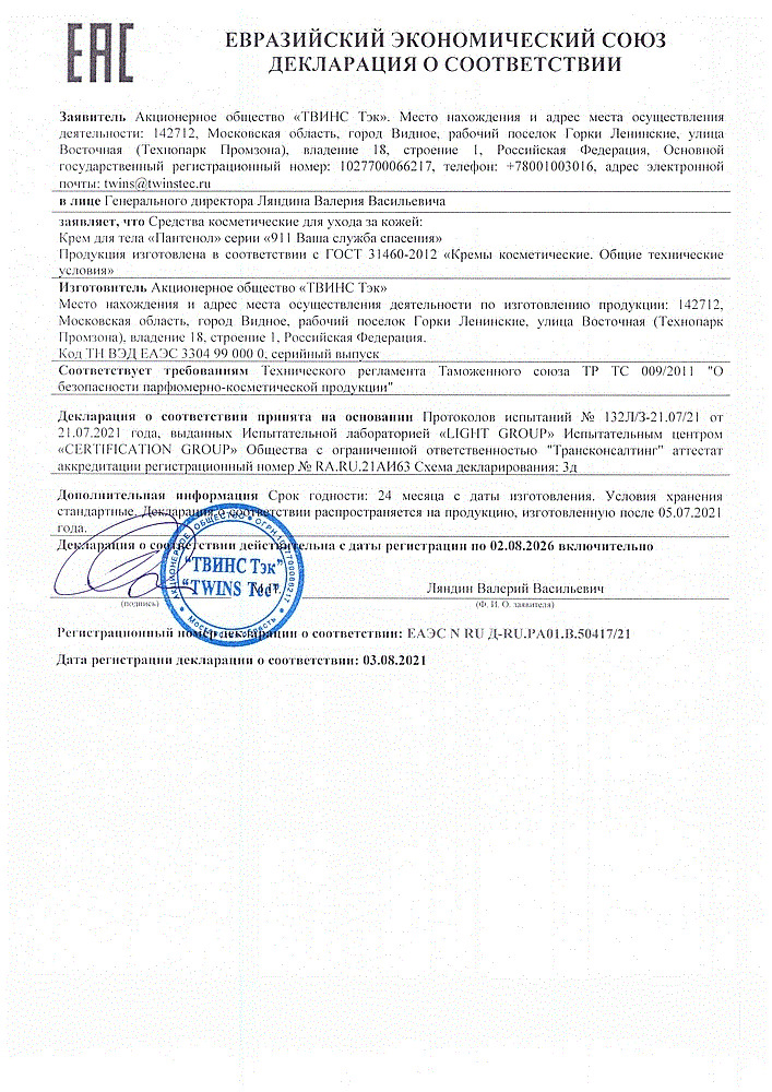 • 📒 Подробная инструкция по применению 911 Пантенол крем для тела 50 мл 1 шт