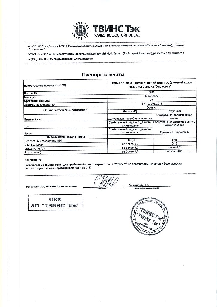 Гель-бальзам косметический УГРИСЕПТ – радикальное средство для решения проблемы угревой сыпи, а также проблемной кожи у подростков.