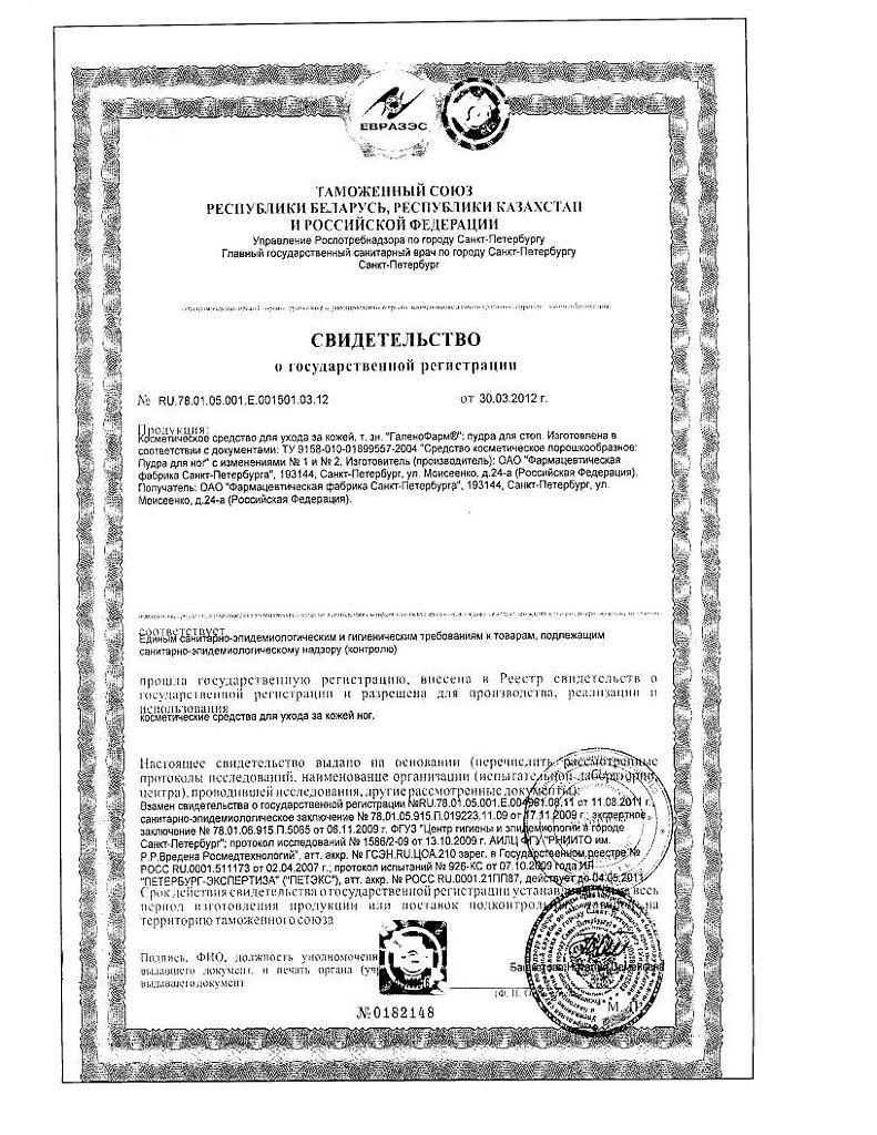Устраняет избыточную потливость и появление неприятного запаха, является профилактическим средством от натираний.