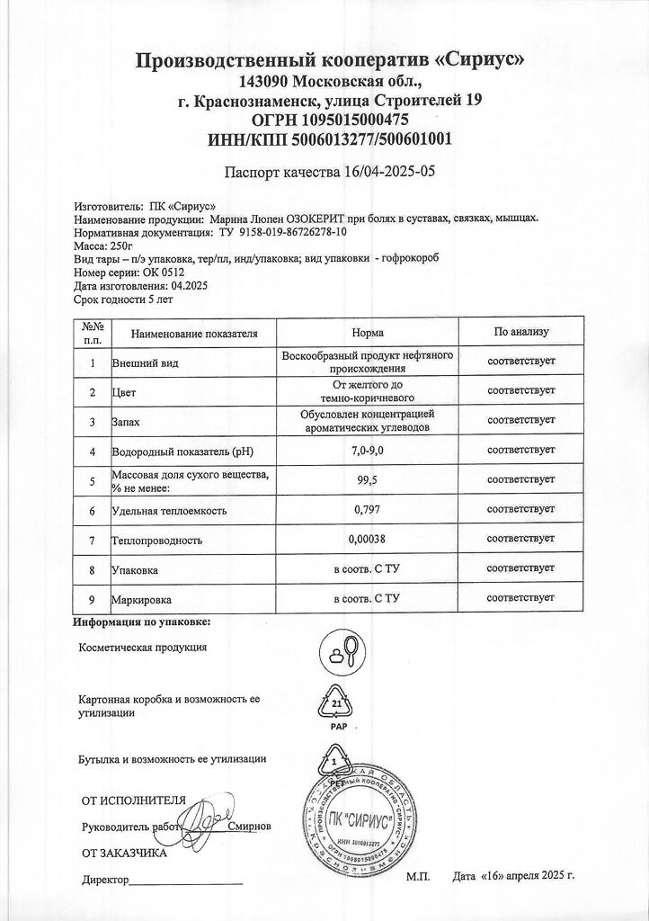 Производитель: Сириус ООО, Россия