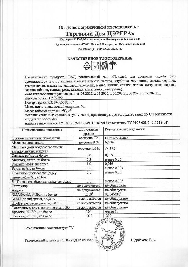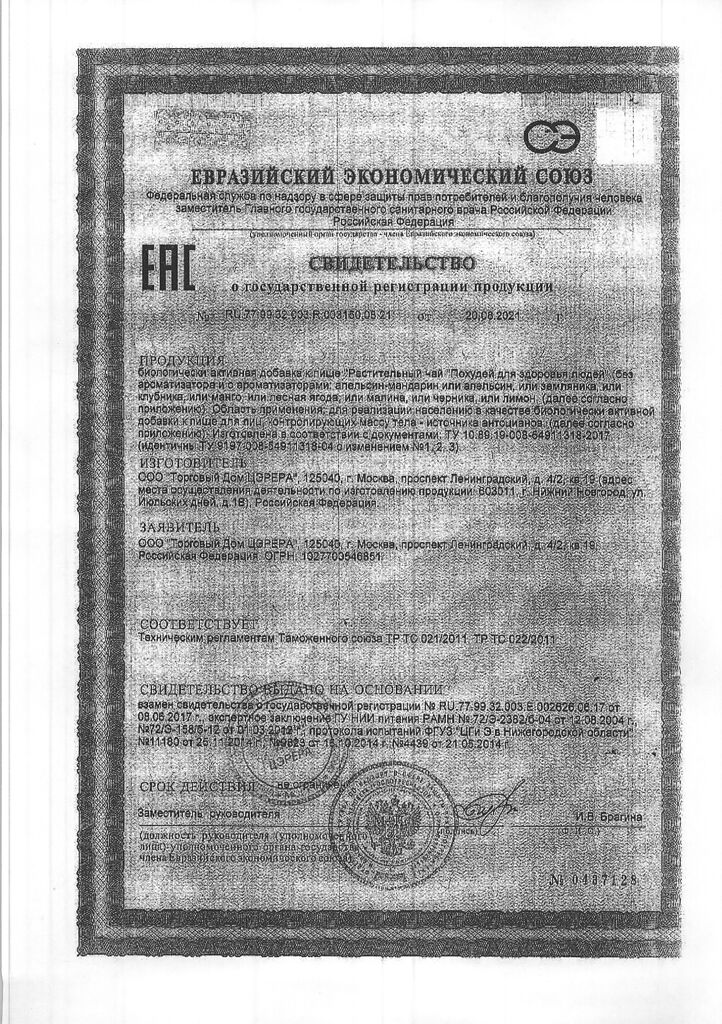 Документы Чай Похудей для здоровья людей с ароматом Клубники фильтр-пакеты по 2 г 30 шт