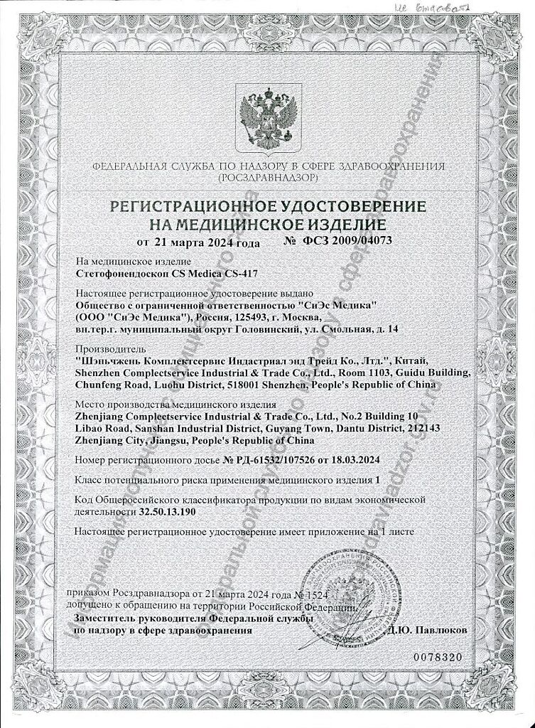 Производитель: СиЭс Медика, Китайская Народная Республика