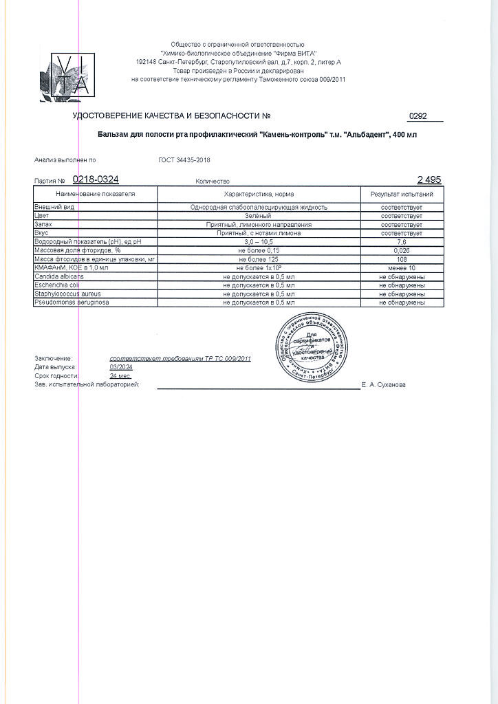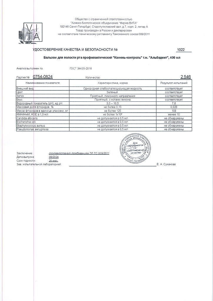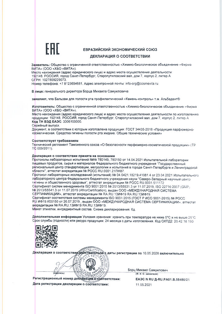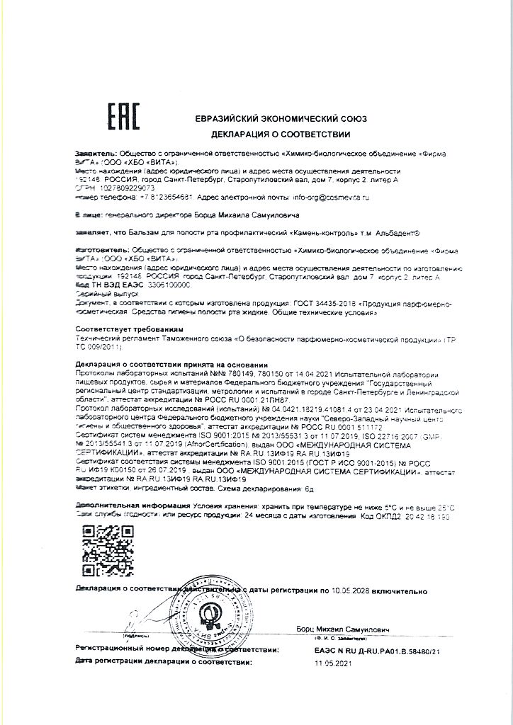 Документы Альбадент бальзам для полости рта камень-контроль 400 мл 1 шт