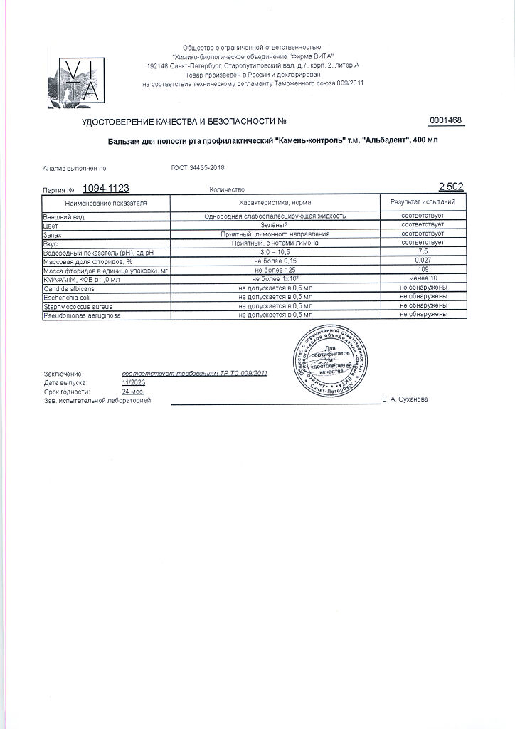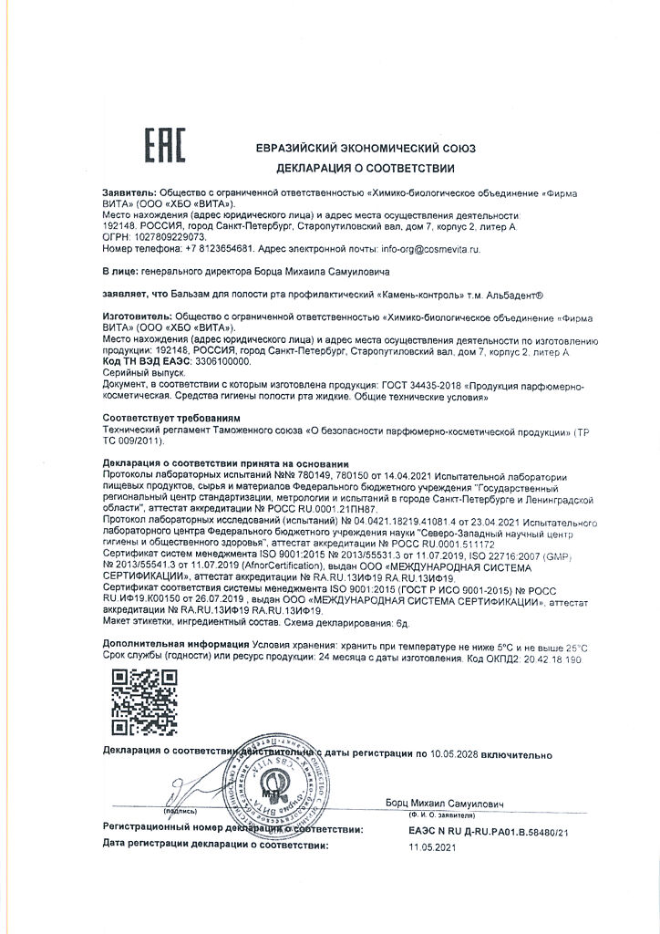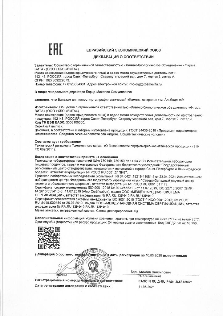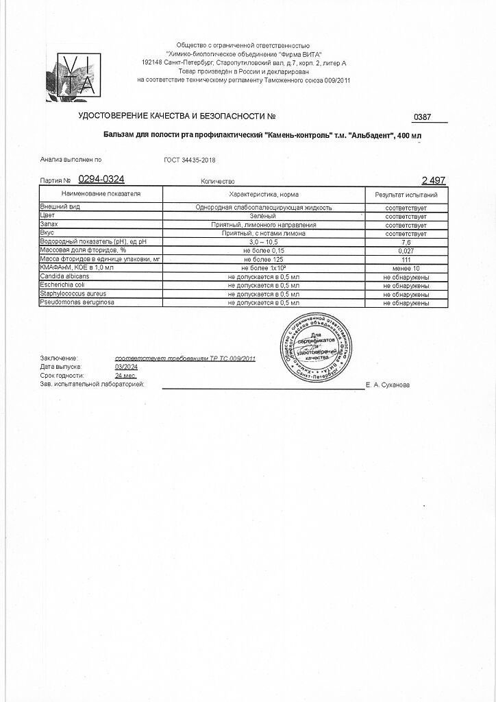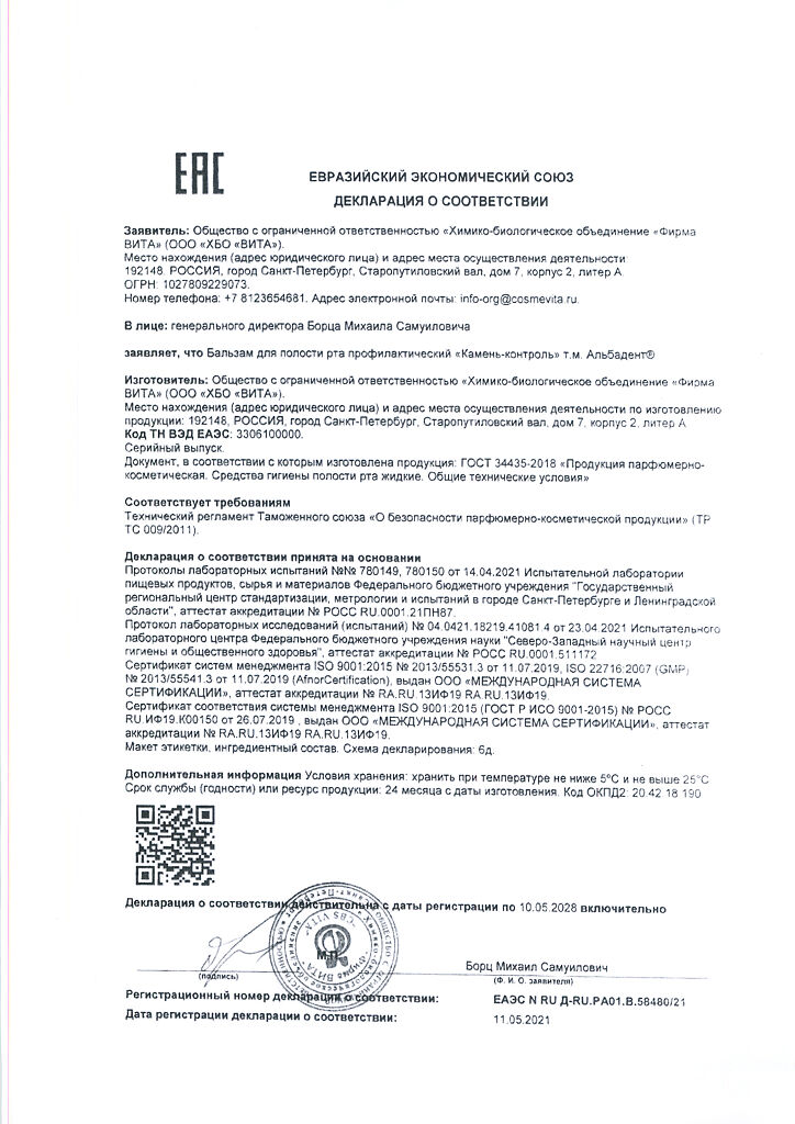 Документы Альбадент бальзам для полости рта камень-контроль 400 мл 1 шт