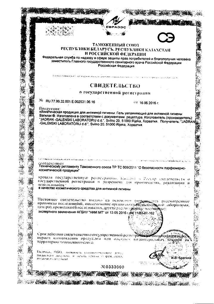 Документы Вагилак гель увлажняющий для интимной гигиены 50 г 1 шт