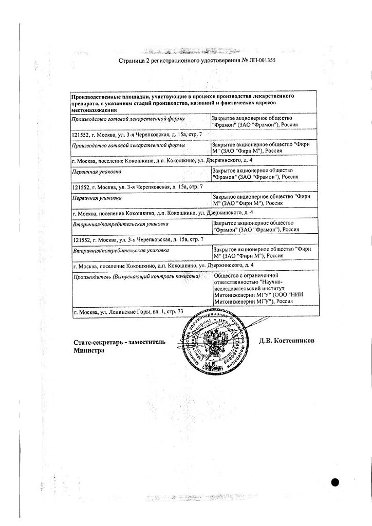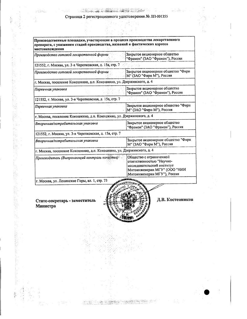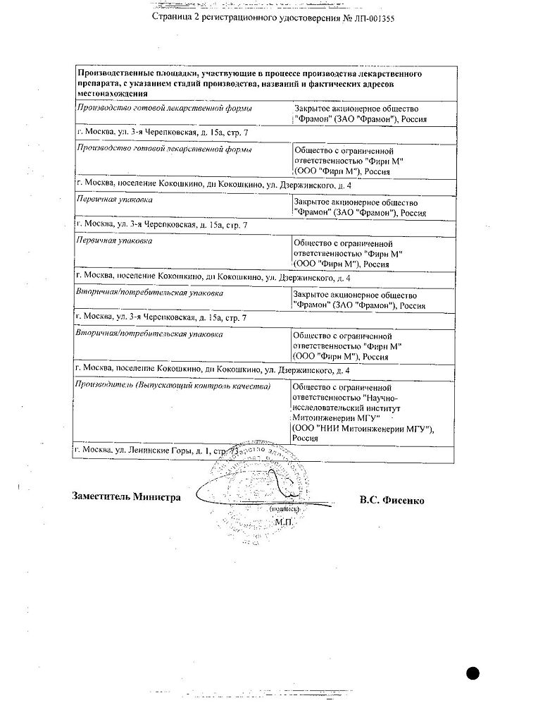 Действующее вещество: Пластохинонилдецилтрифенилфосфония бромид