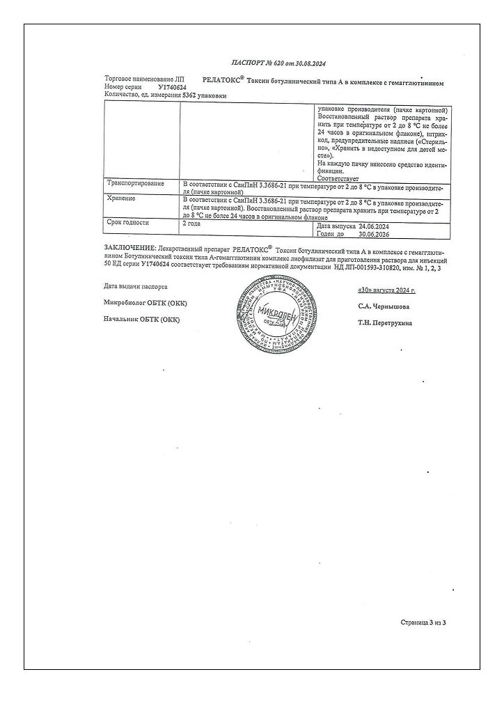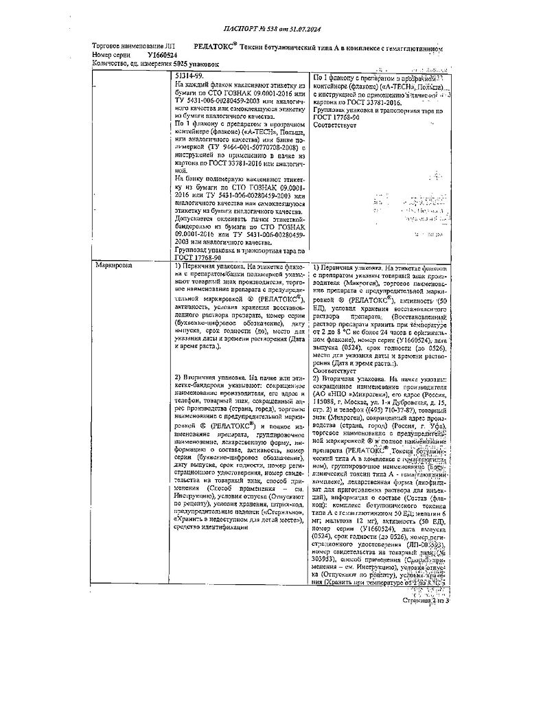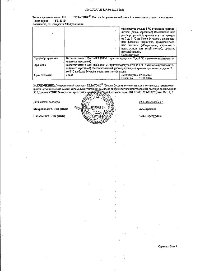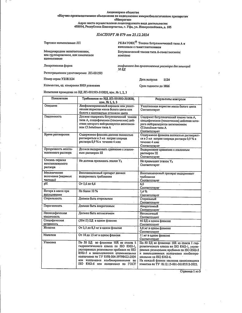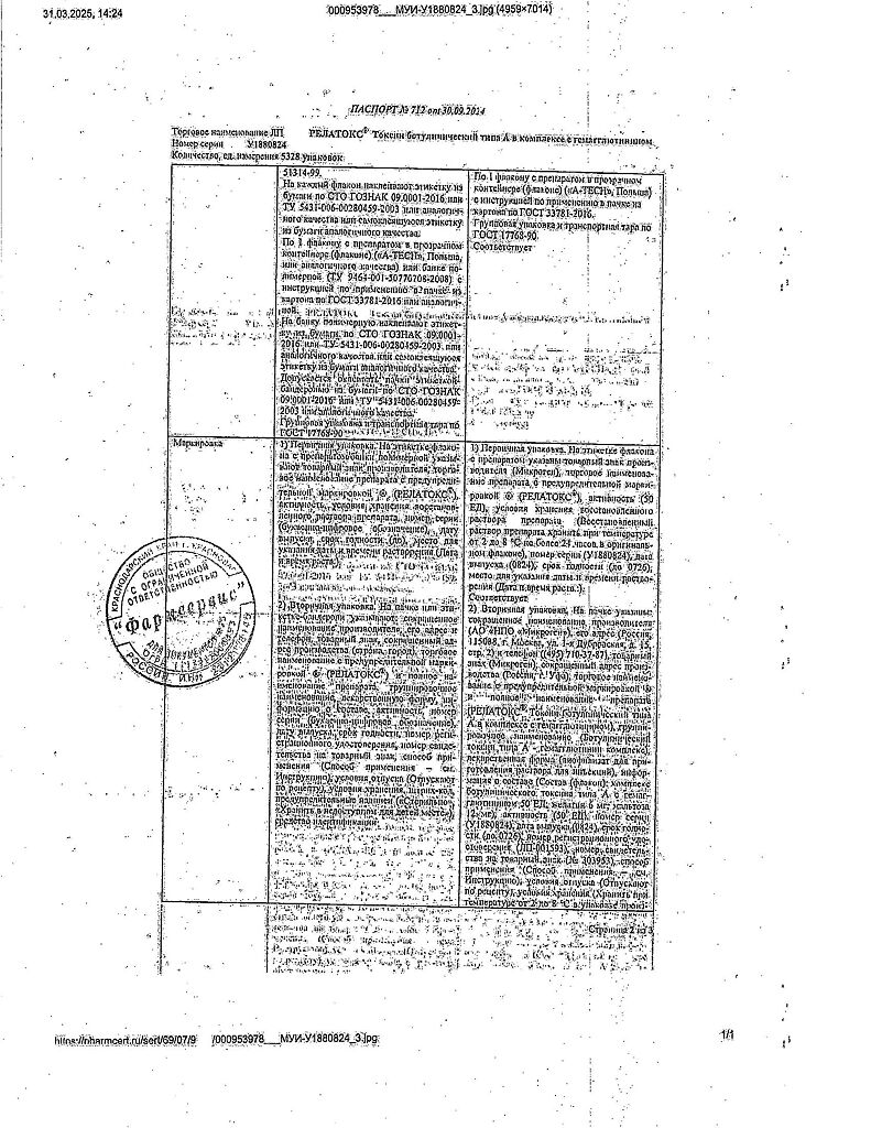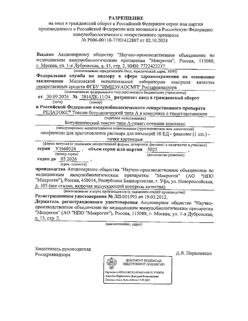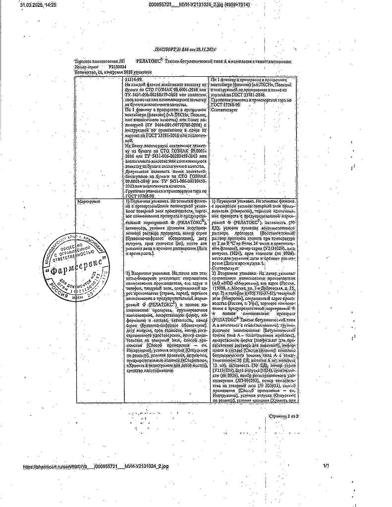 Документы Релатокс лиофилизат д/приг раствора для инъекций 50 ед 1 шт