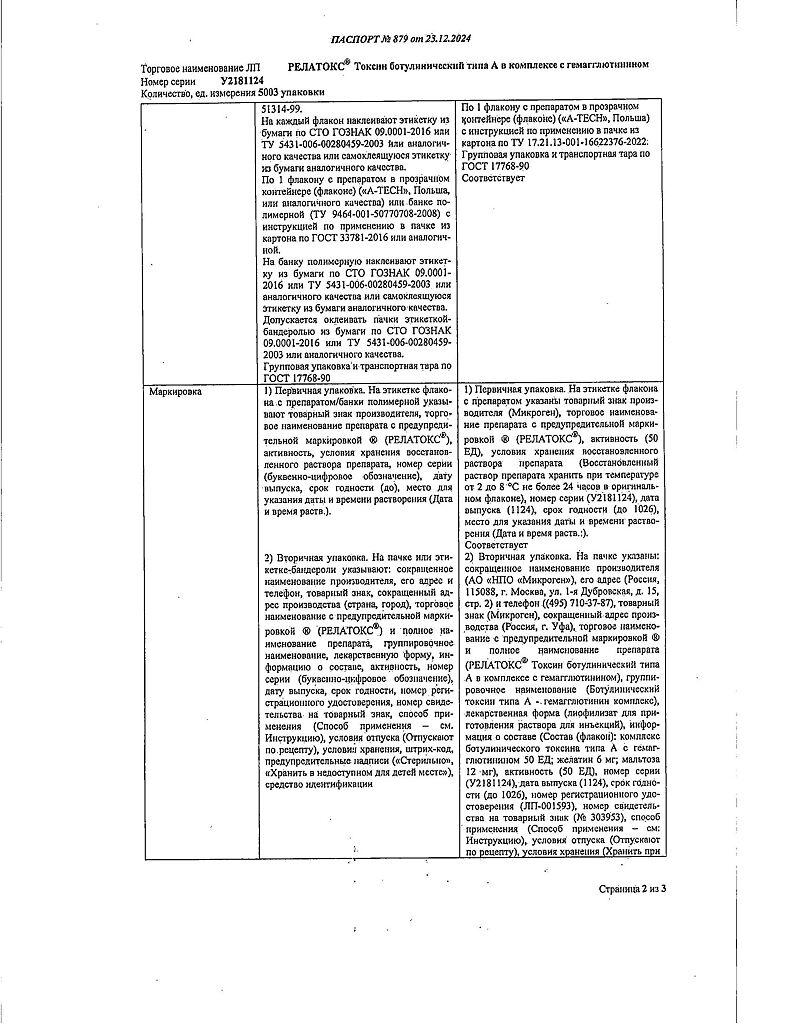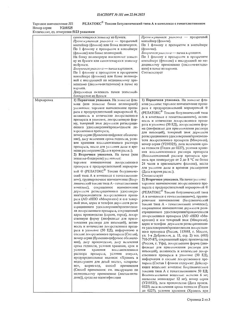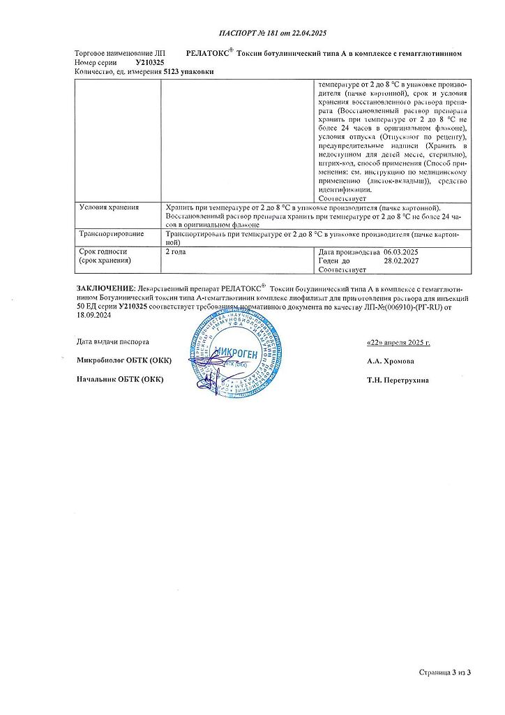 • 📒 Подробная инструкция по применению Релатокс лиофилизат д/приг раствора для инъекций 50 ед 1 шт