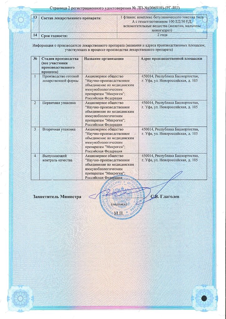 Действующее вещество: Ботулинический токсин типа A-гемагглютинин комплекс