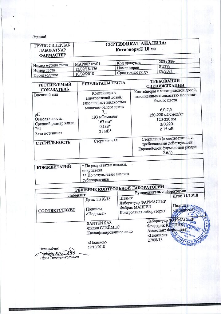 Катионорм содержит положительно заряженные наночастички с масляным ядром, которые электростатически притягиваются к отрицательно заряженной поверхности глаза.