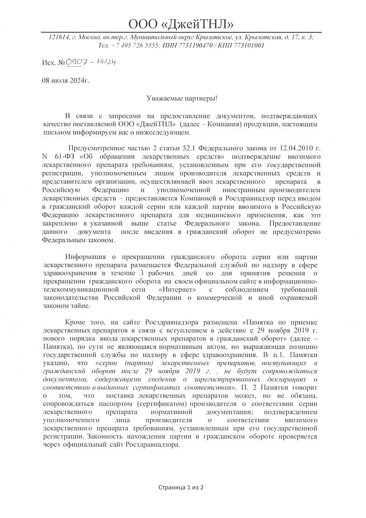 Страница носит информационный характер о наличии препаратов. Перед назначением и применением проконсультируйтесь с врачом
