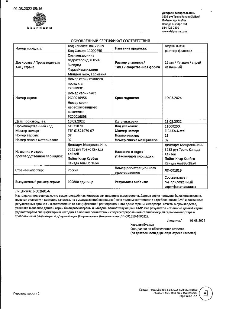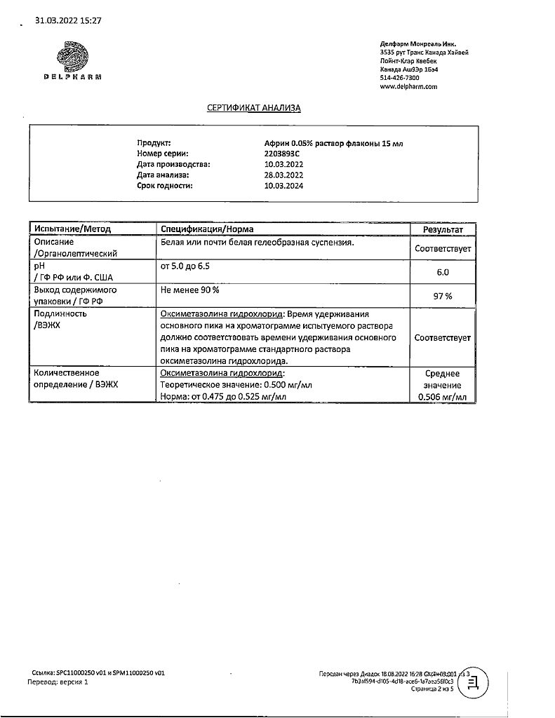 Производитель: Делфарм Монреаль Инк., Канада