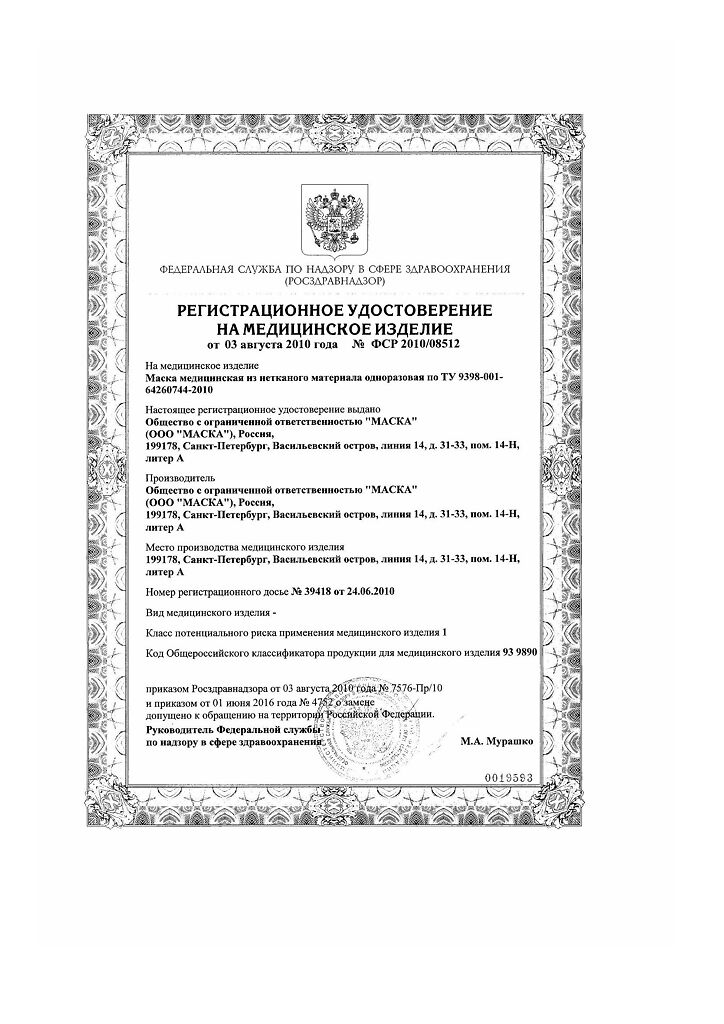 Маски медицинские на резинках с носовым фиксатором, предназначены для защиты дыхательных путей от проникновения инфекций и пыли. Обеспечивают максимальный уровень фильтрации от бактерий. Маска выполняет защитную функцию в течение 2-х часов. Рекомендуется заменить маску по истечении указанного времени.