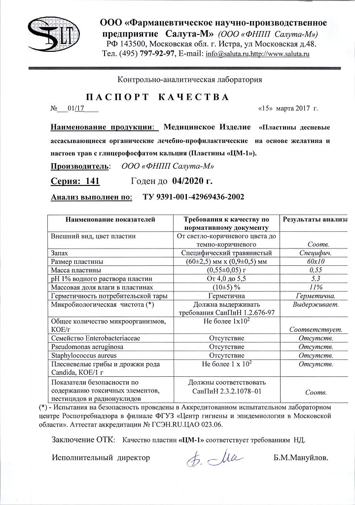 Кроме этого, Пластины «ЦМ-1» снимают боль в десне, способствуют регенерации (восстановлению) тканей десны, устраняют неприятный запах изо рта.