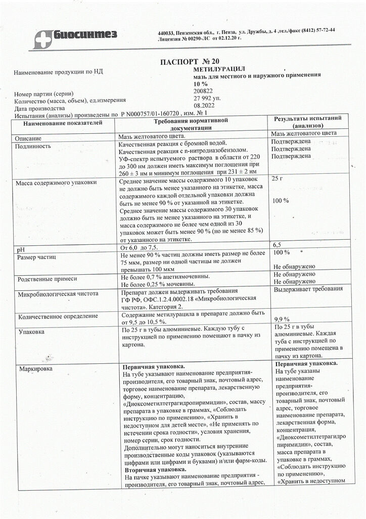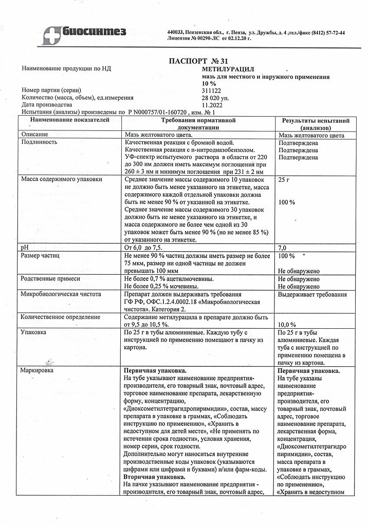 • 📒 Подробная инструкция по применению Метилурацил мазь для местного и наружного применения 10 % 25 г 1 шт