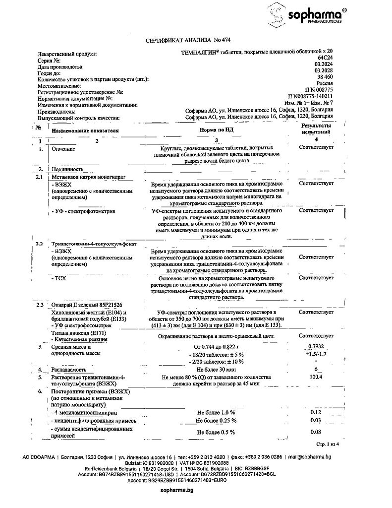 Бренд: Темпалгин