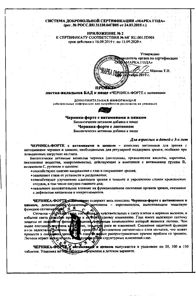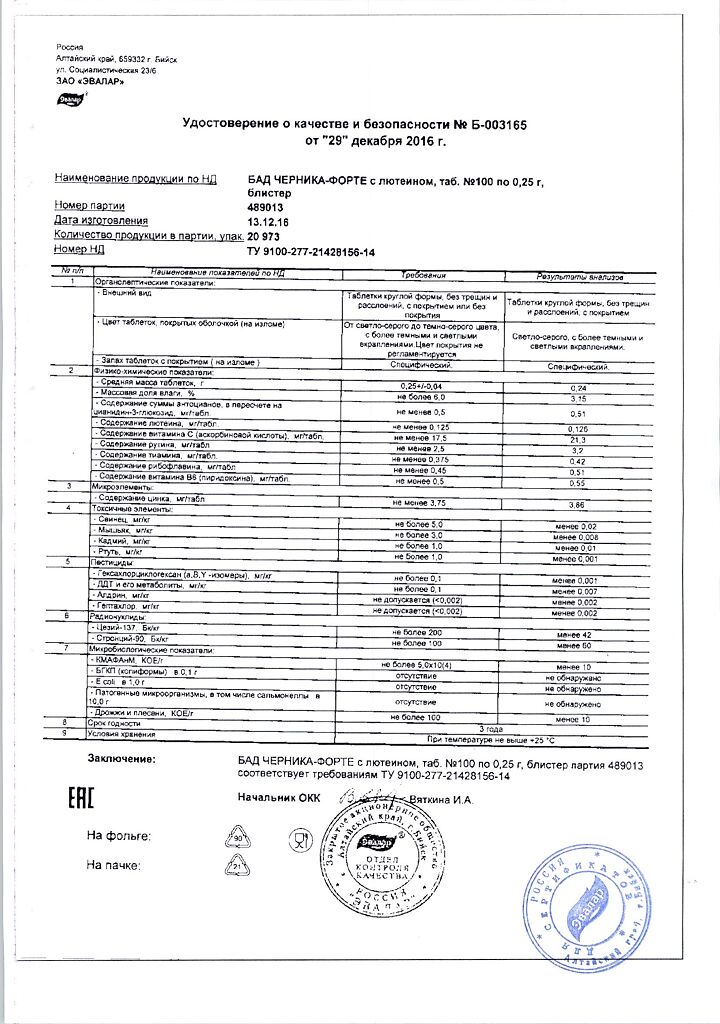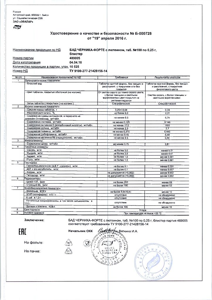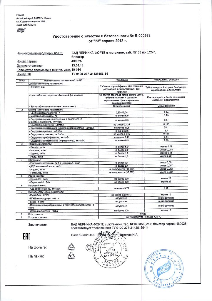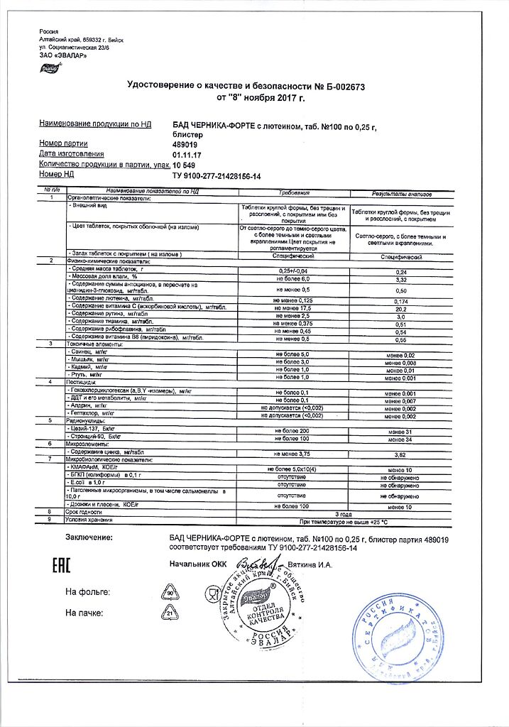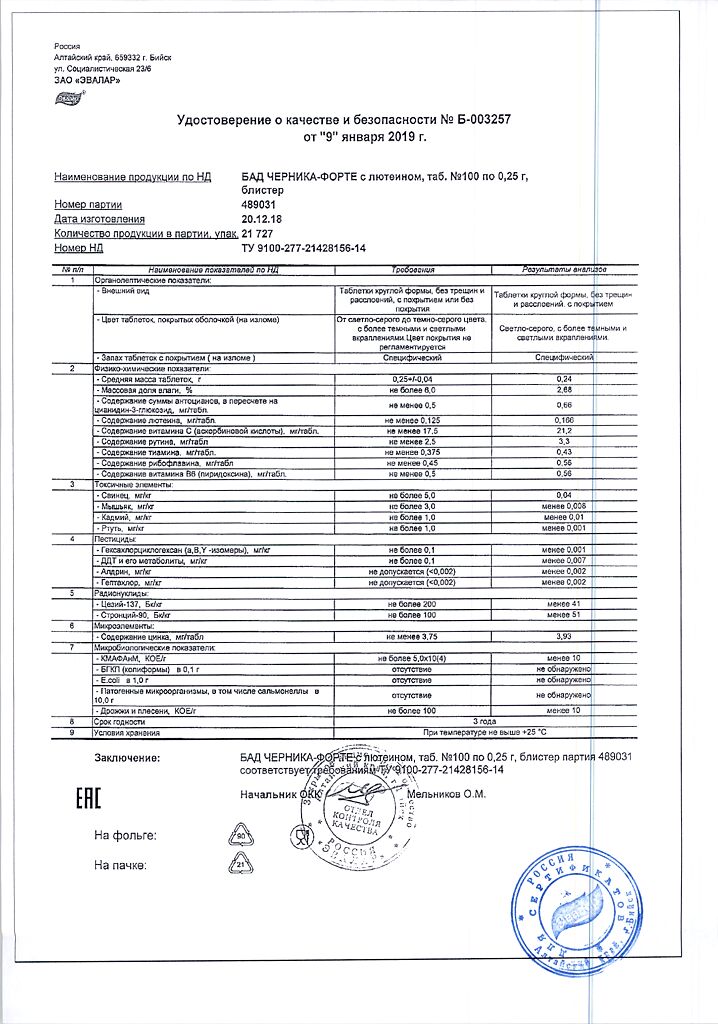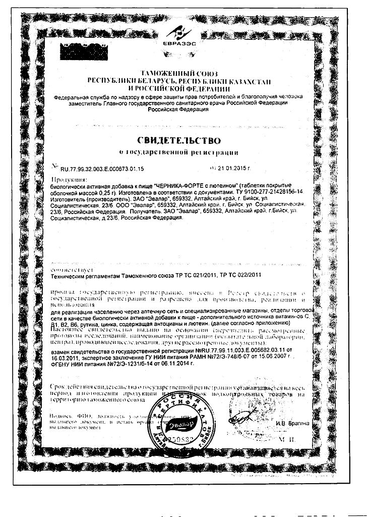 Все варианты Черника Форте Эвалар