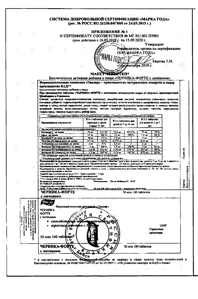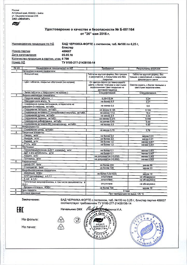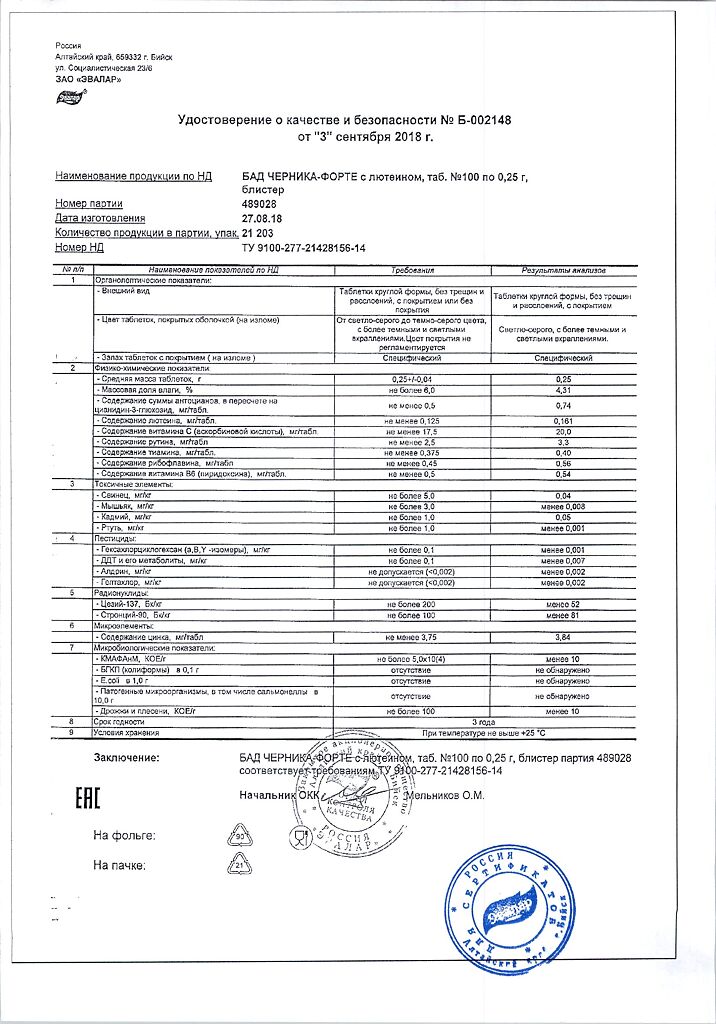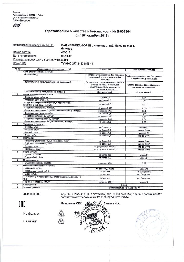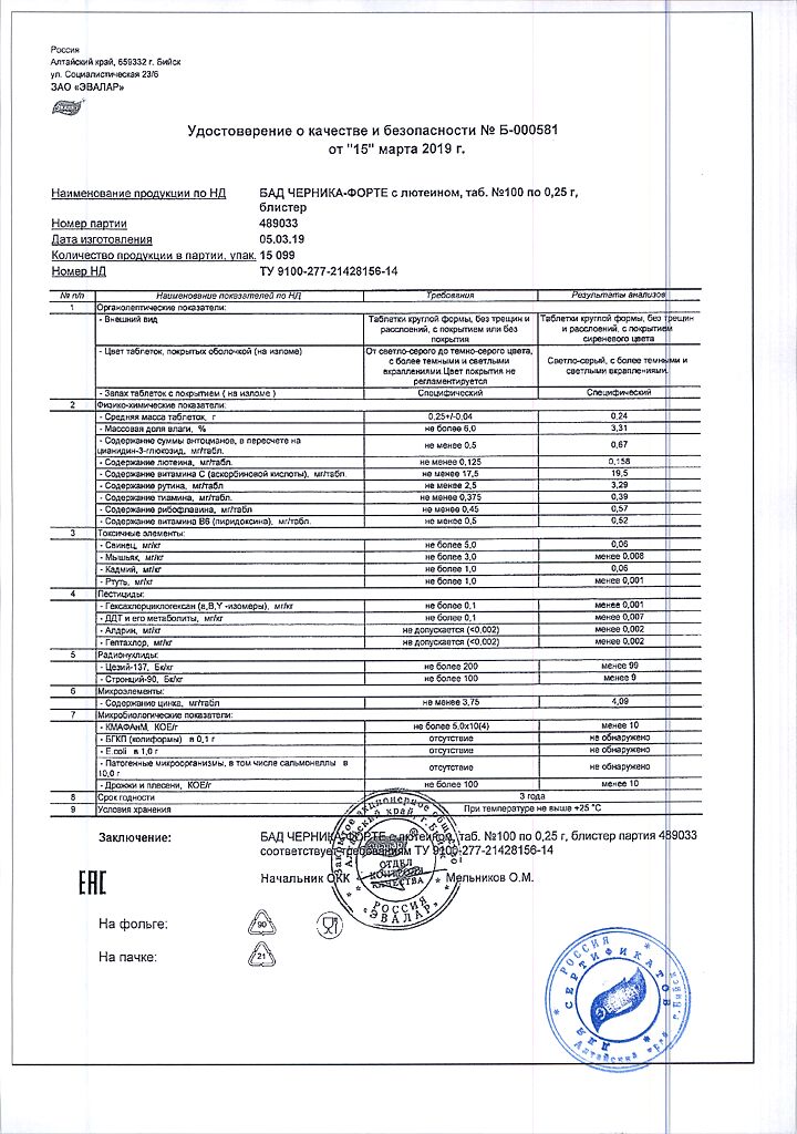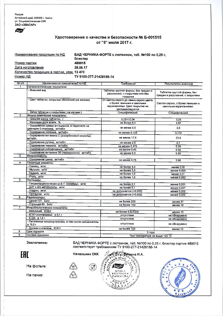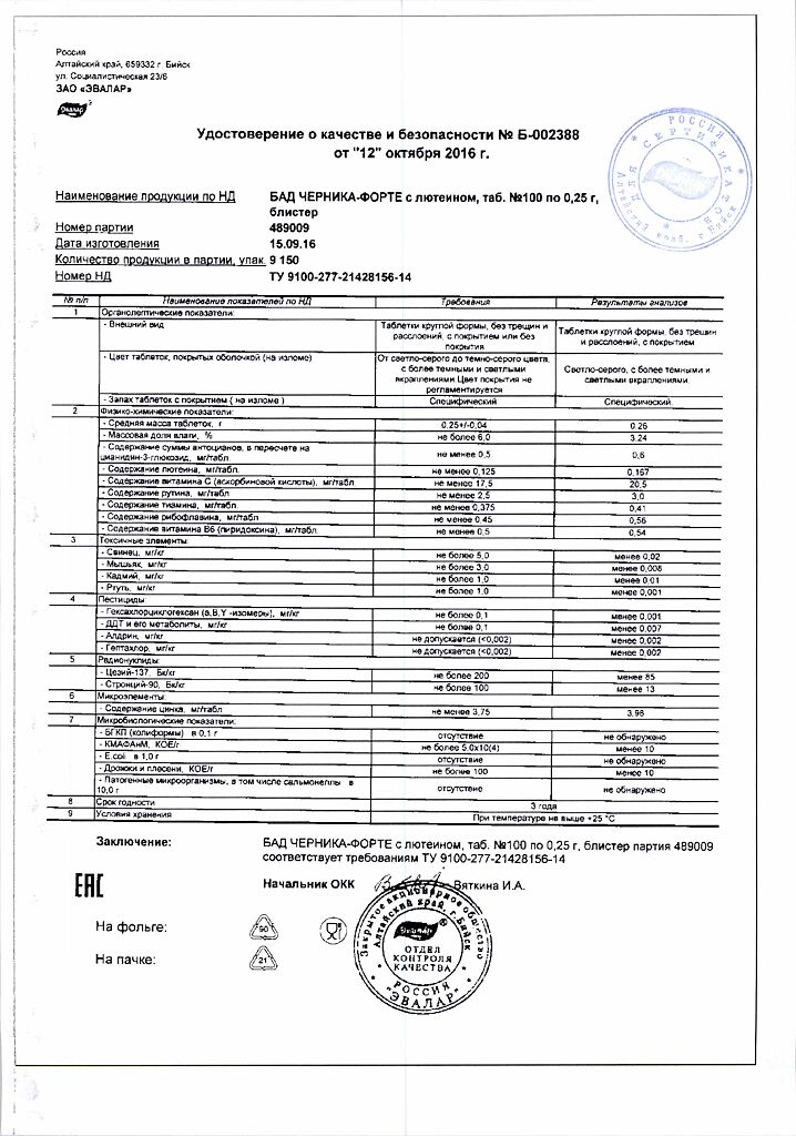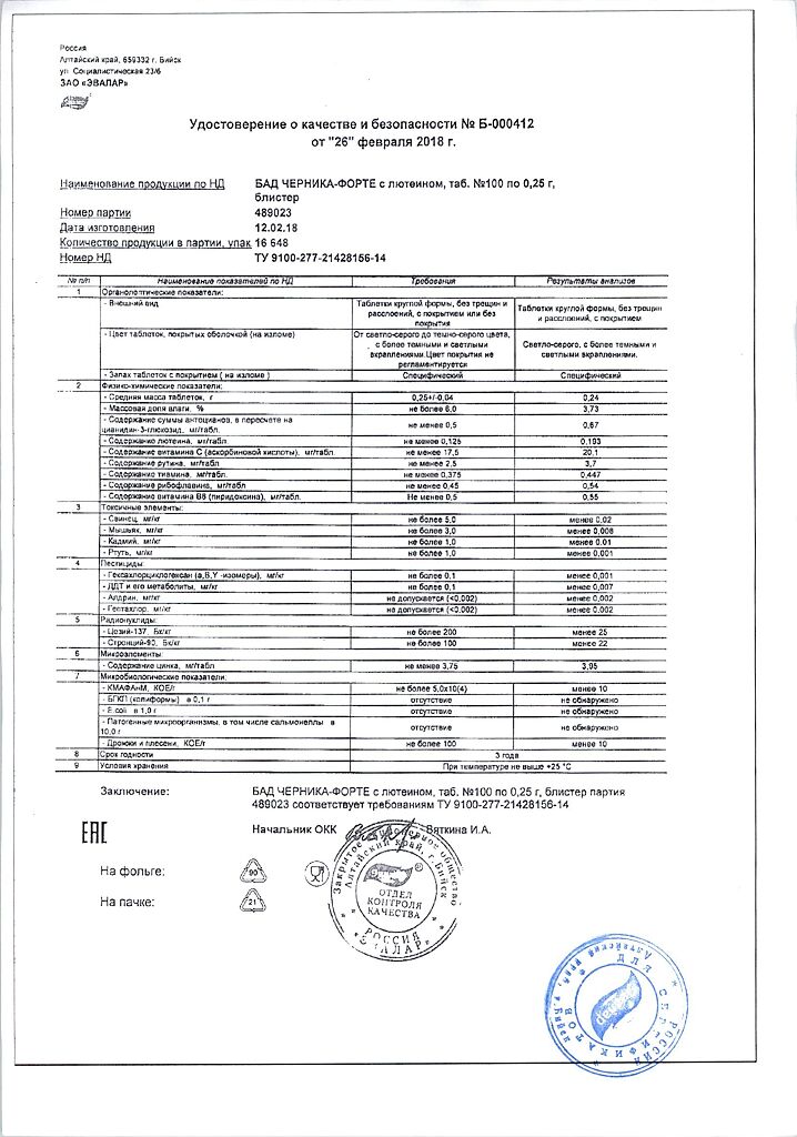 Все варианты Черника Форте Эвалар