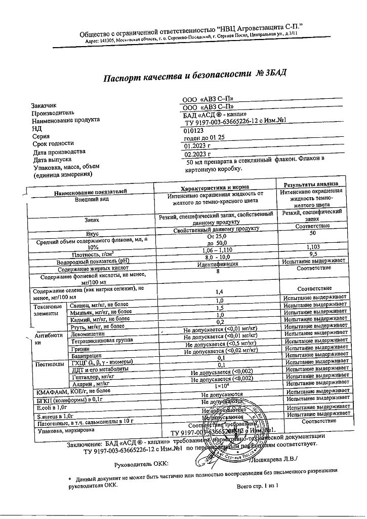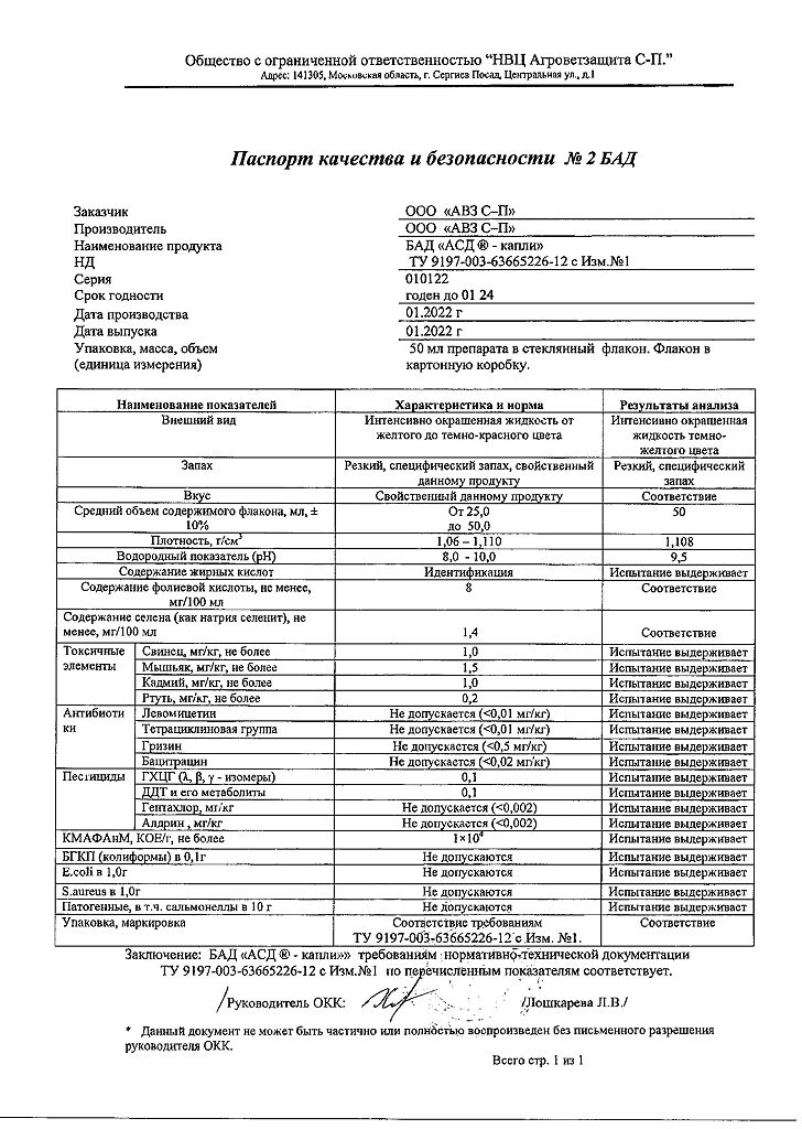 Содержание биологически активных веществ, мг/100 мл, не менее: фолиевая кислота - 8,0, селен - 1,4.
