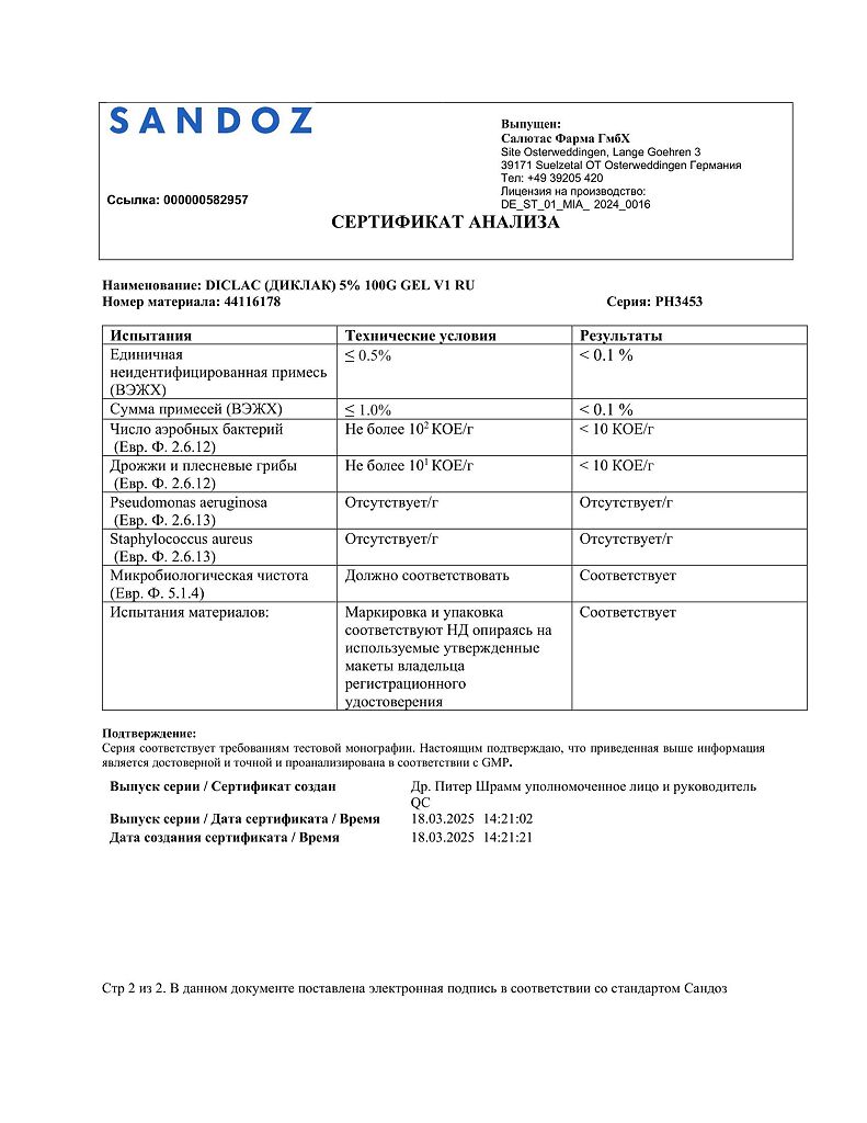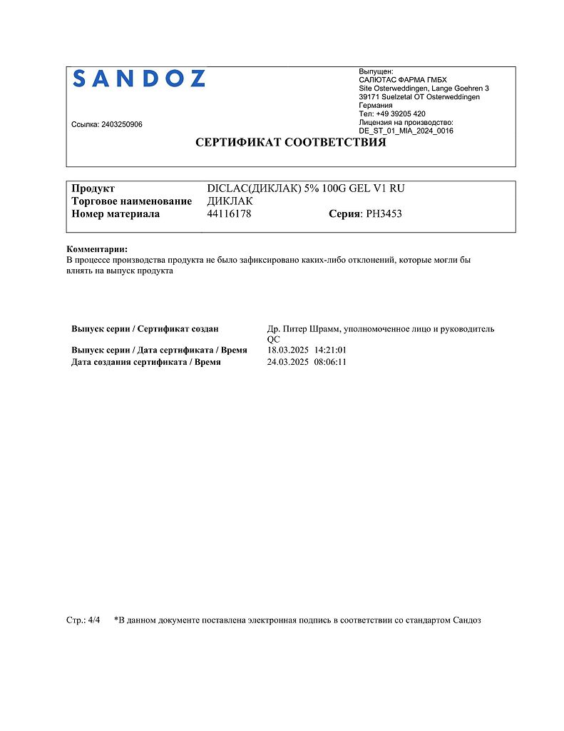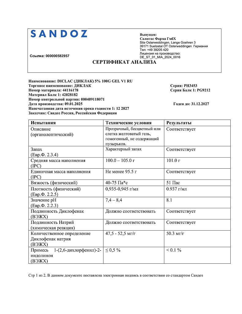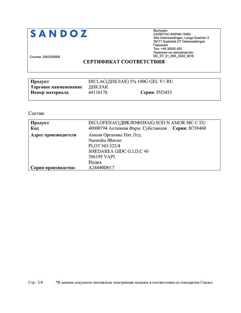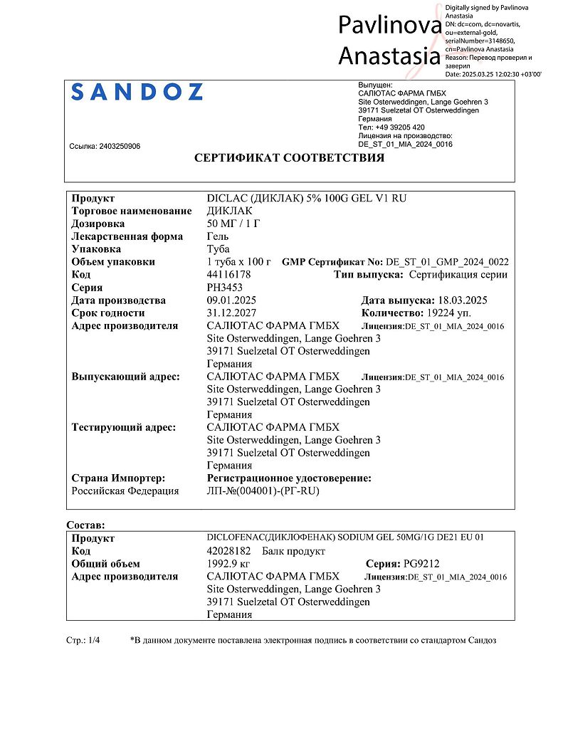 Документы Диклак гель для наружного применения 5 % 100 г 1 шт