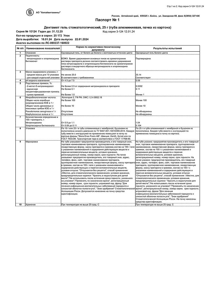 Действующее вещество: Метронидазол, Хлоргексидин