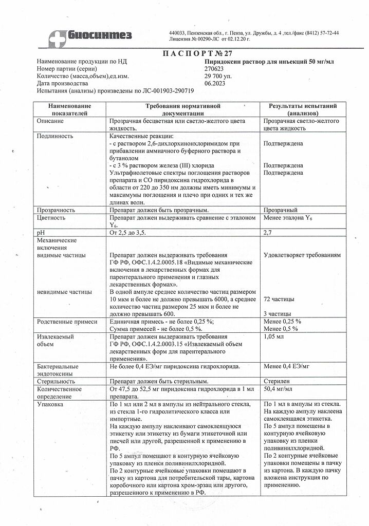Препарат обладает действием, восполняющим дефицит витамина B6.