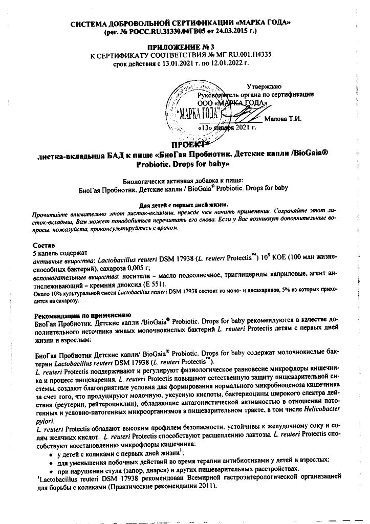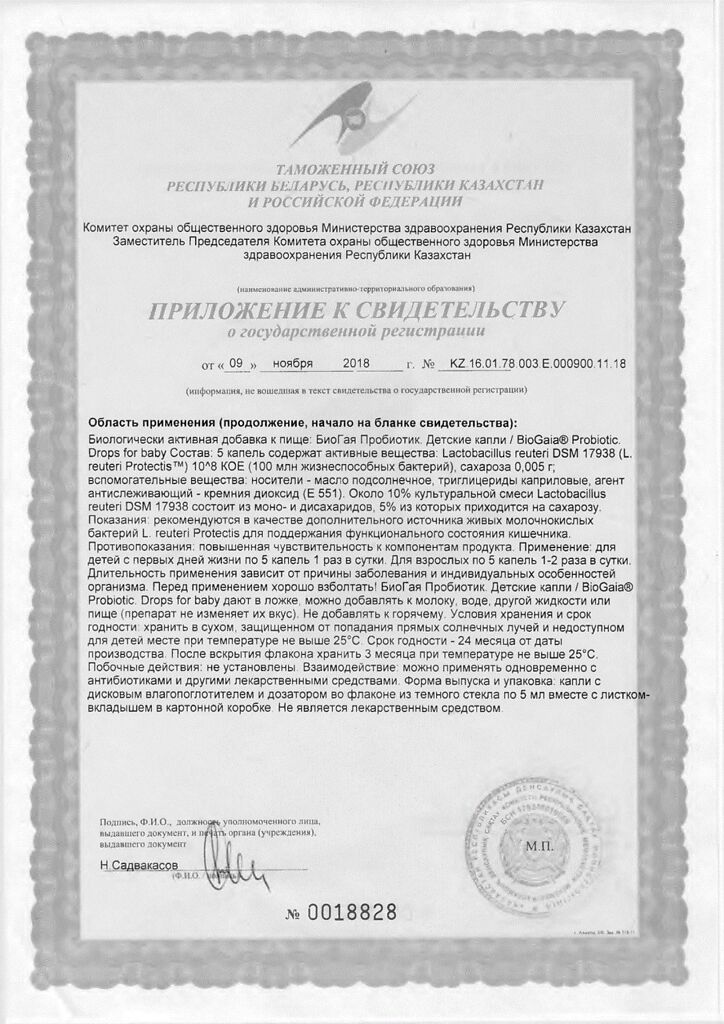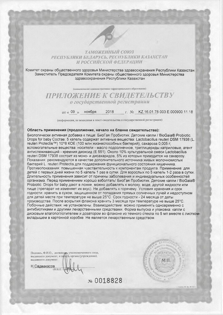 Рекомендуется в качестве дополнительного источника живых молочнокислых бактерий L reuteri Protectis для поддержания функционального состояния кишечника.
