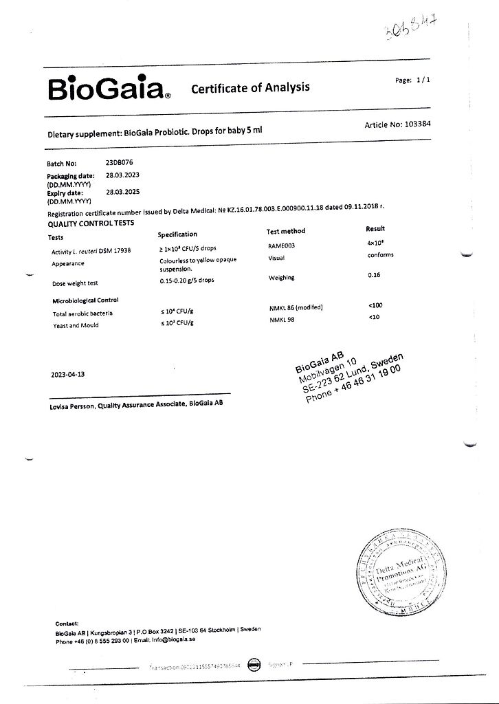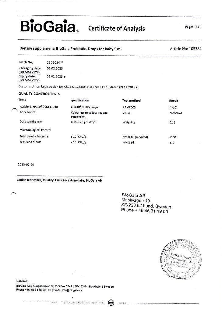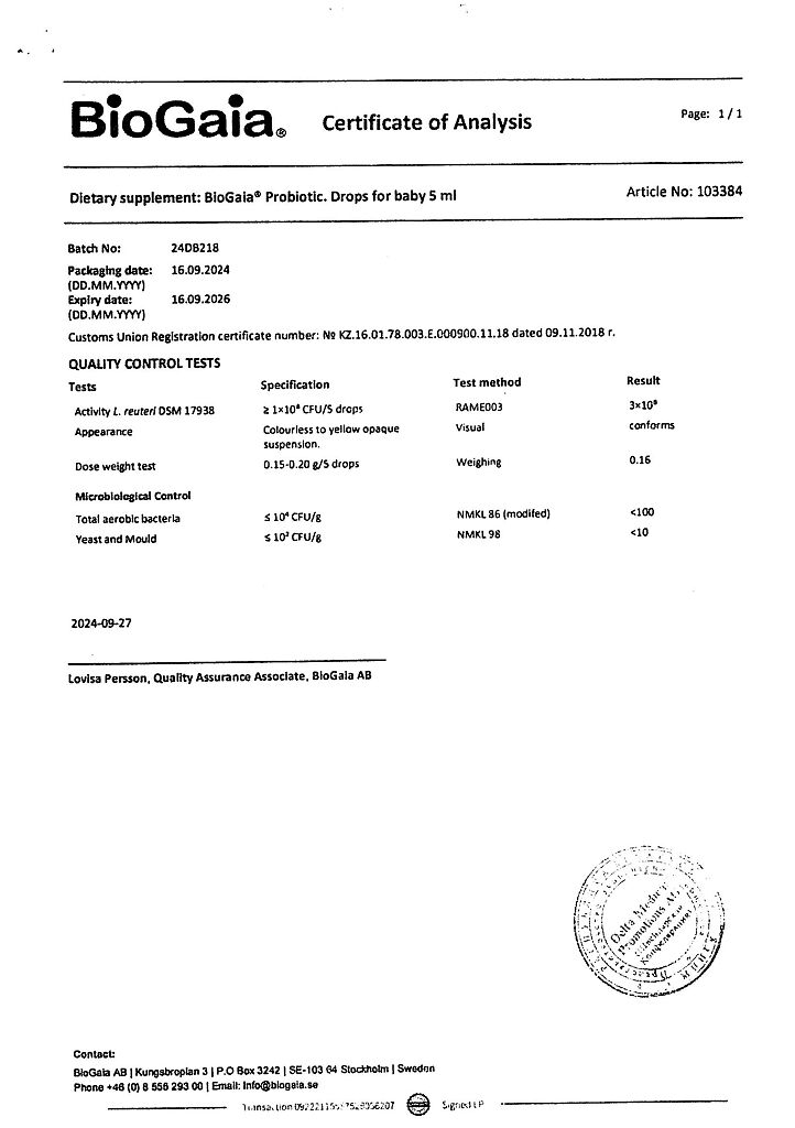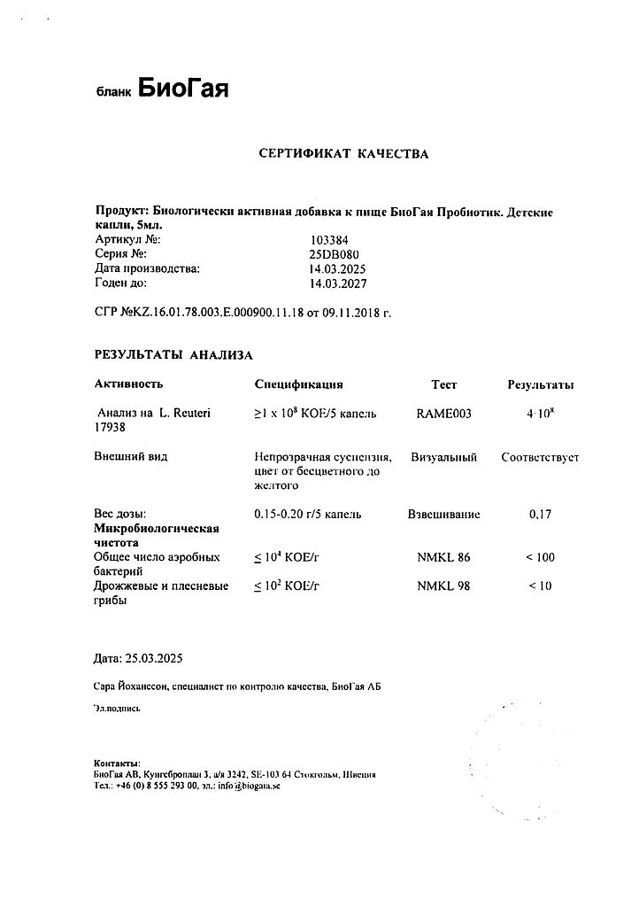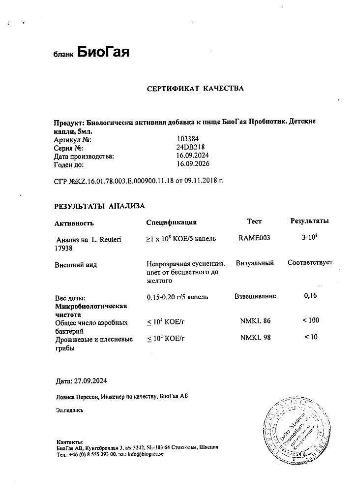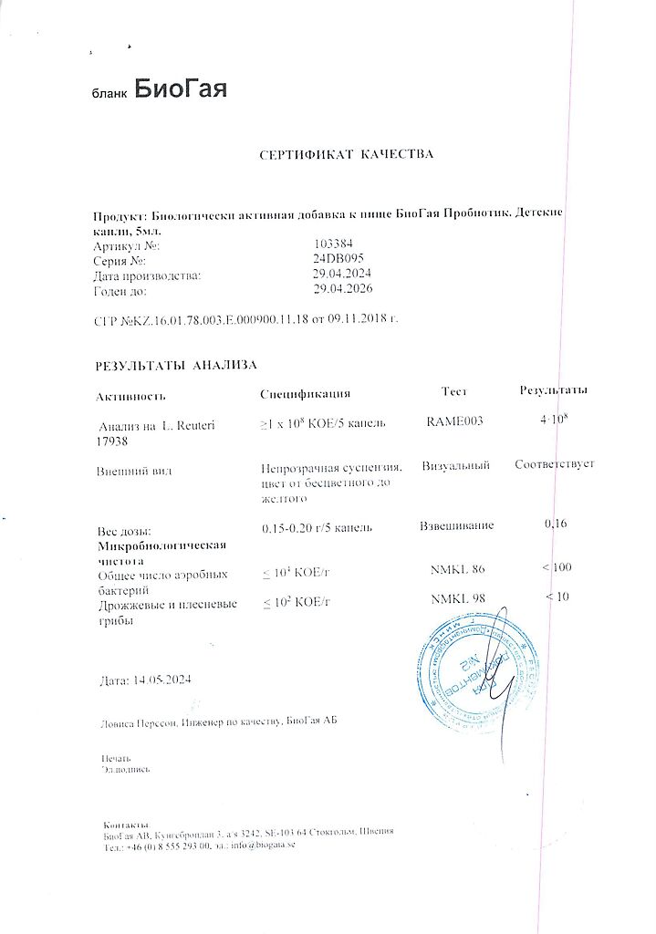 Производитель: БиоГая Продакшн АБ, Винделваген, Швеция