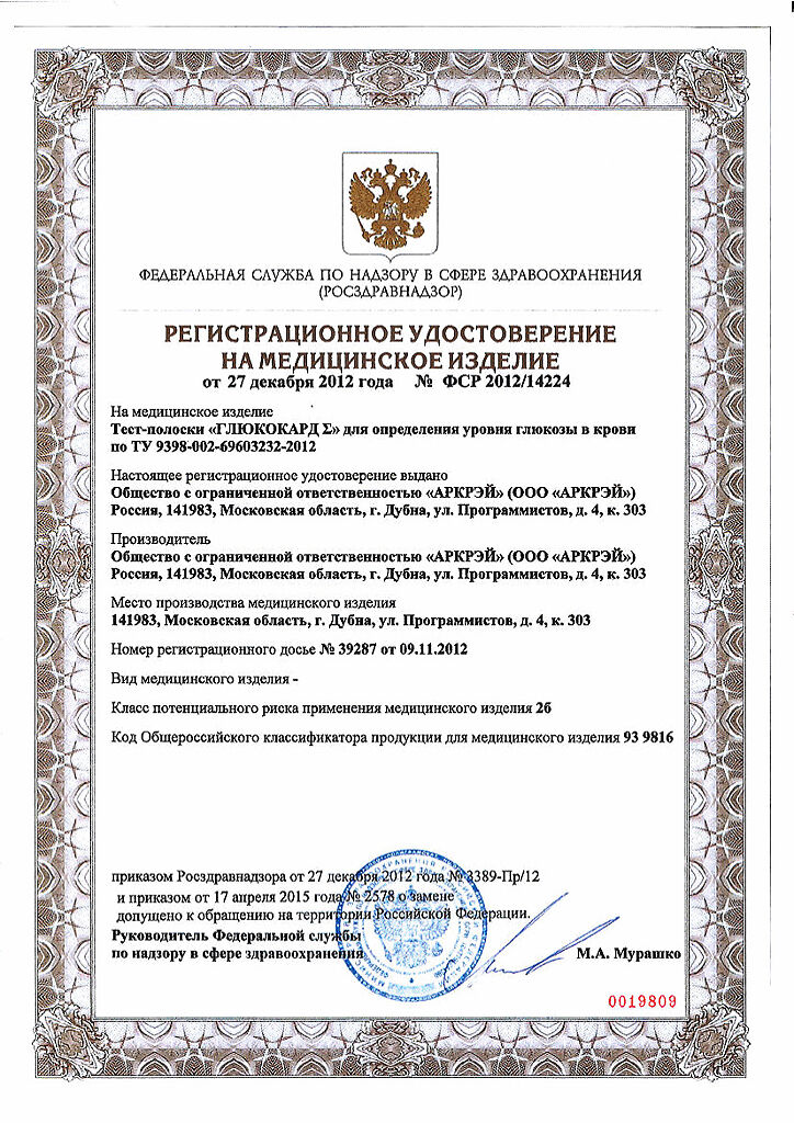 Документы Тест-полоски Glucocard Sigma 50 шт