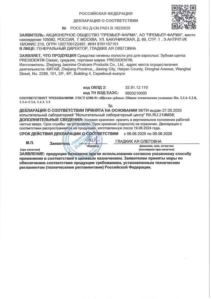 Производитель: Zhejiang Jasmine Oralcare Products Co., Ltd, Китайская Народная Республика