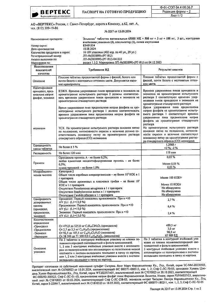Действующее вещество: Неомицин, Орнидазол, Преднизолон, Эконазол