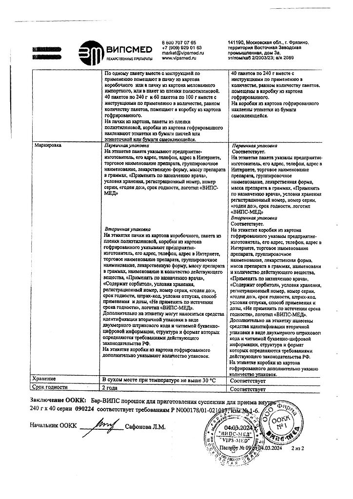 Производитель: Випс-Мед Фирма, Россия