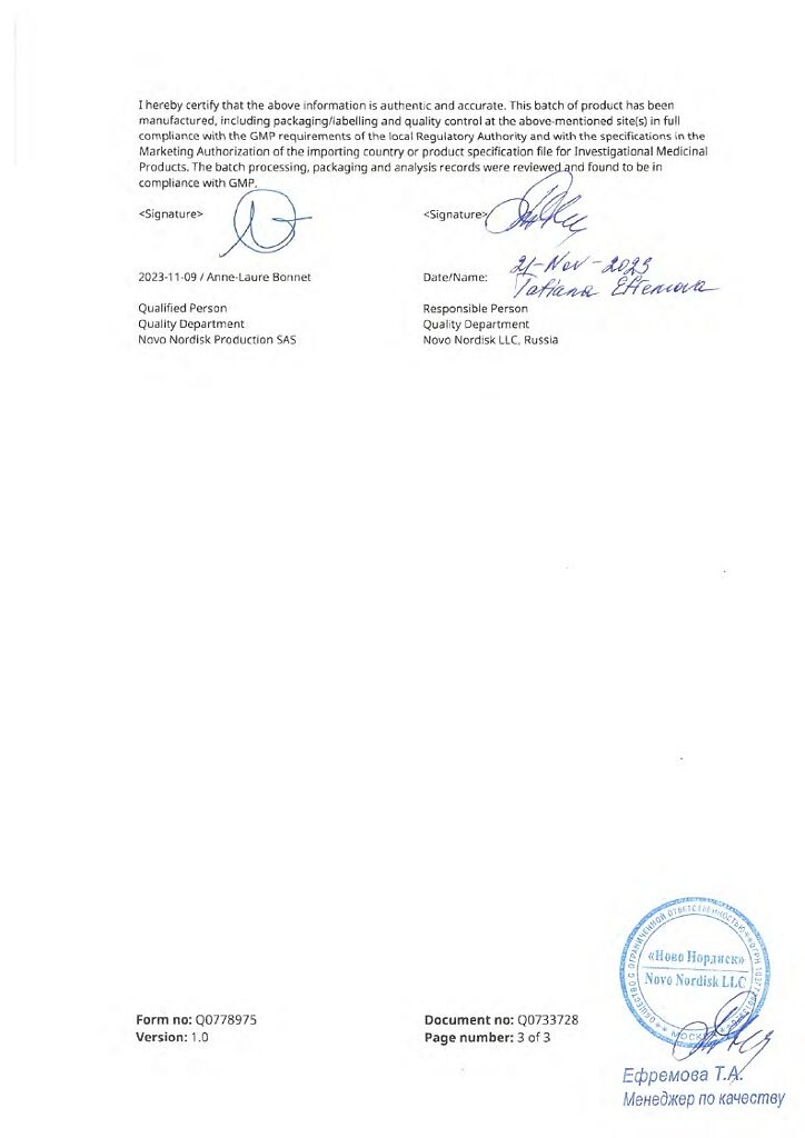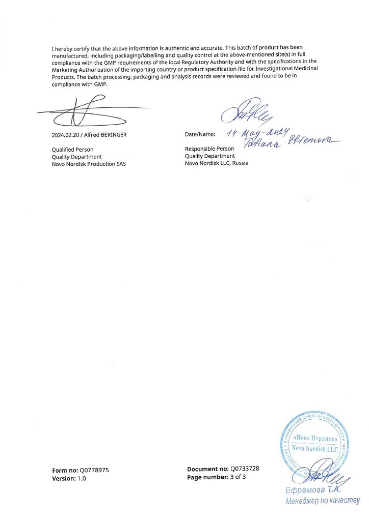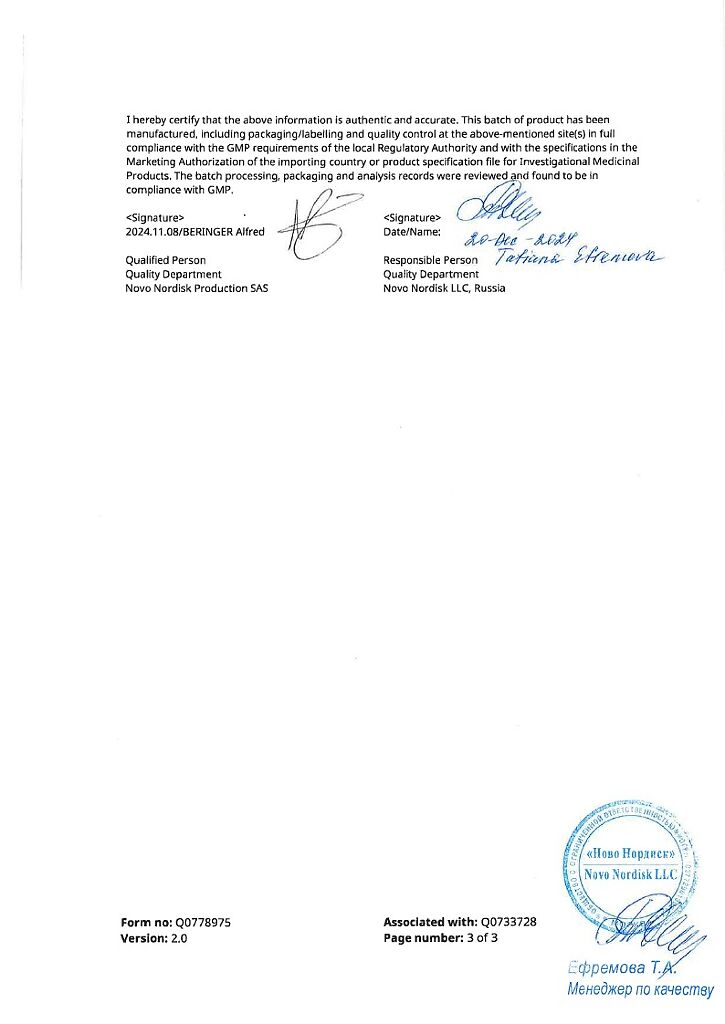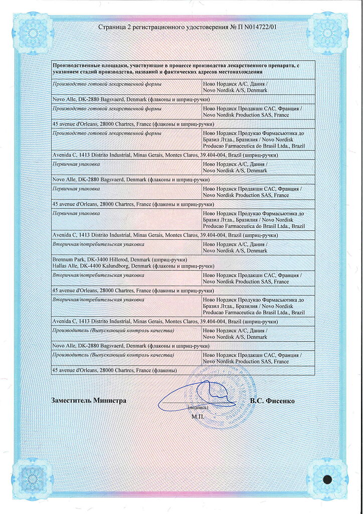 Производитель: Ново Нордиск продакшн САС, Франция