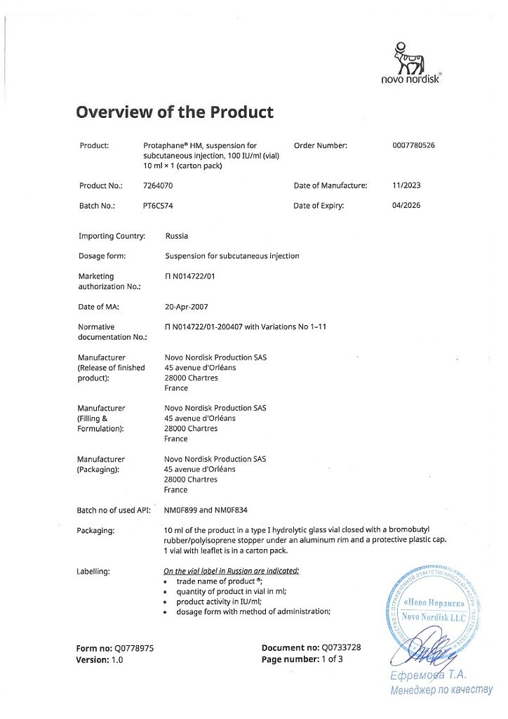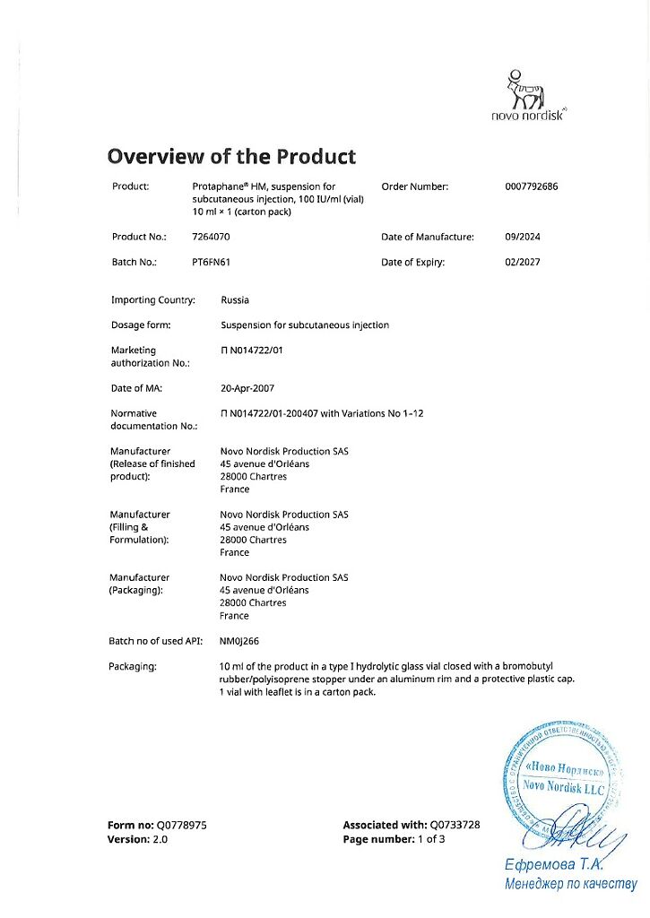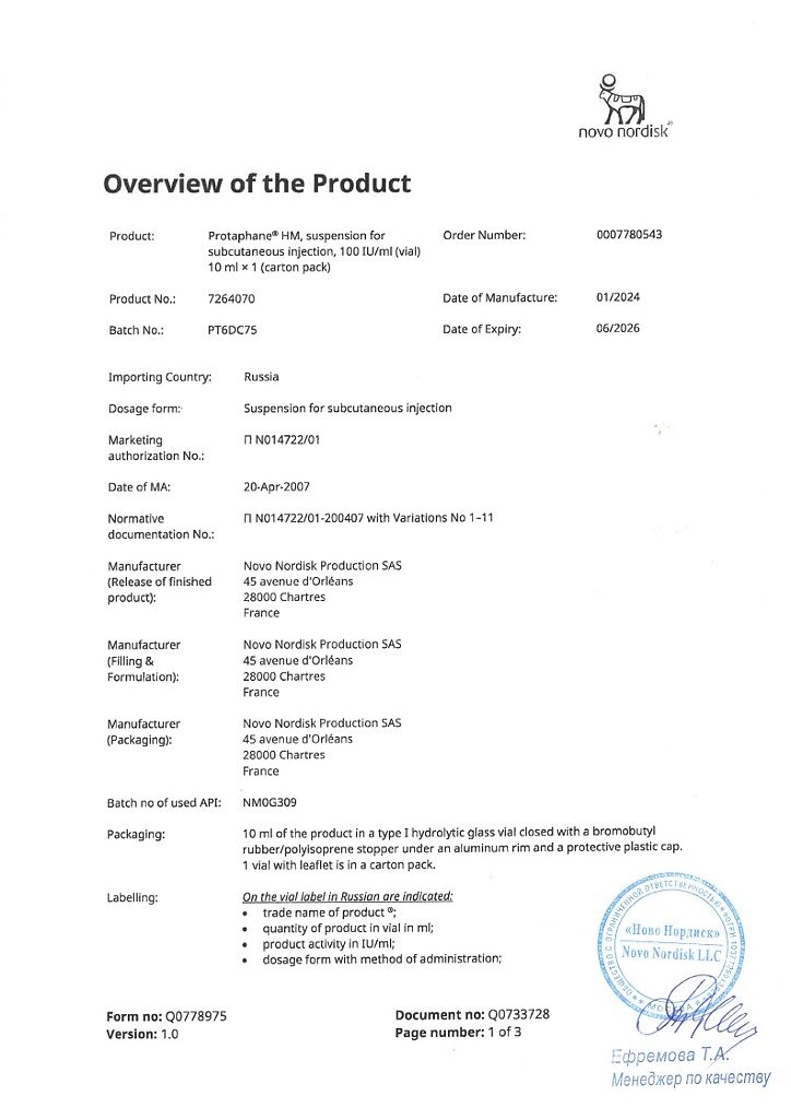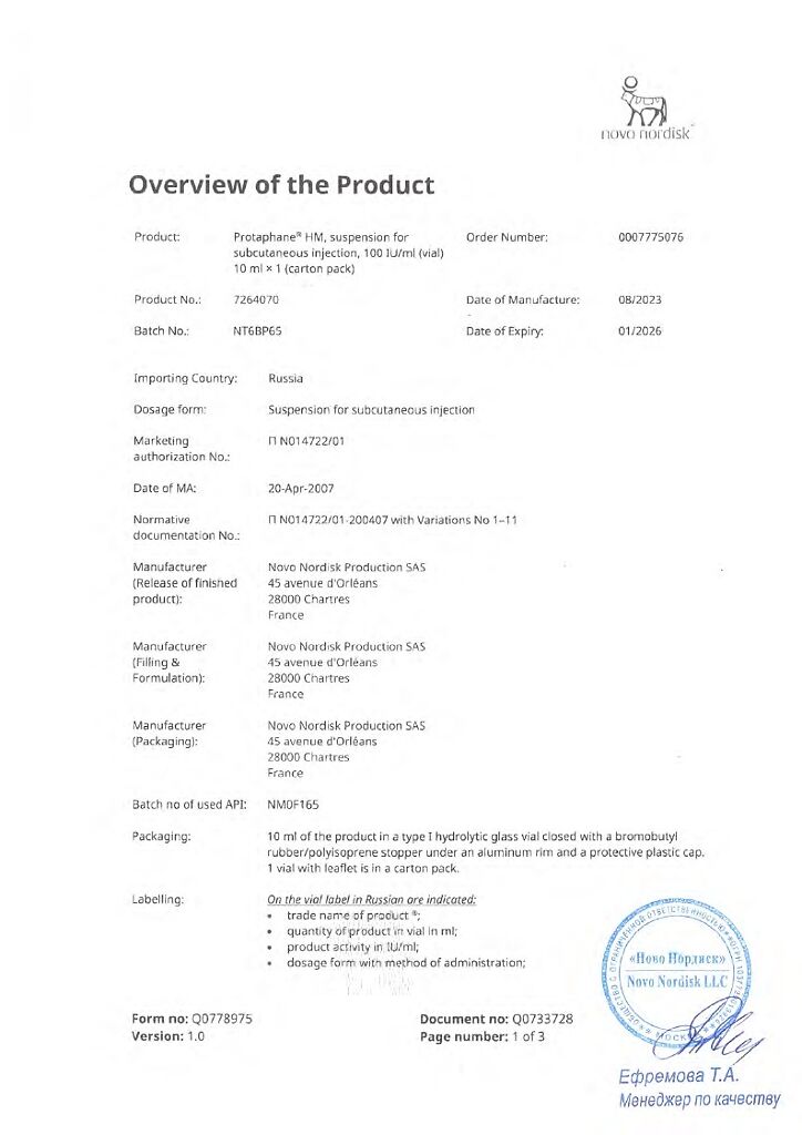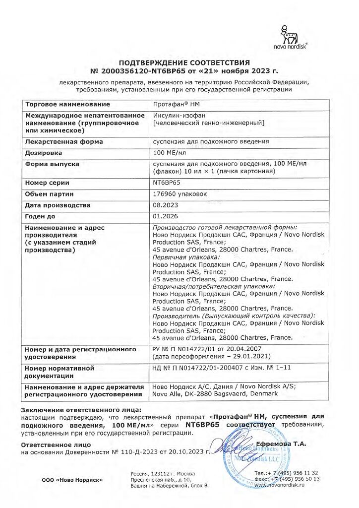 Производитель: Ново Нордиск продакшн САС, Франция