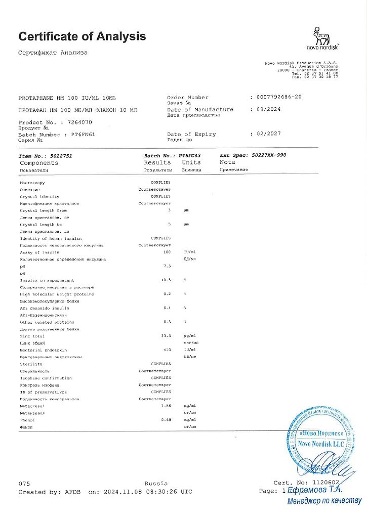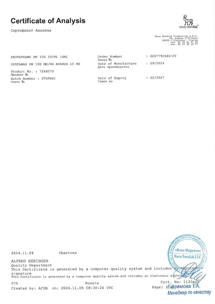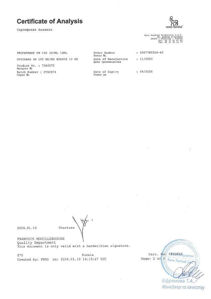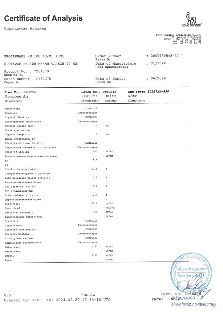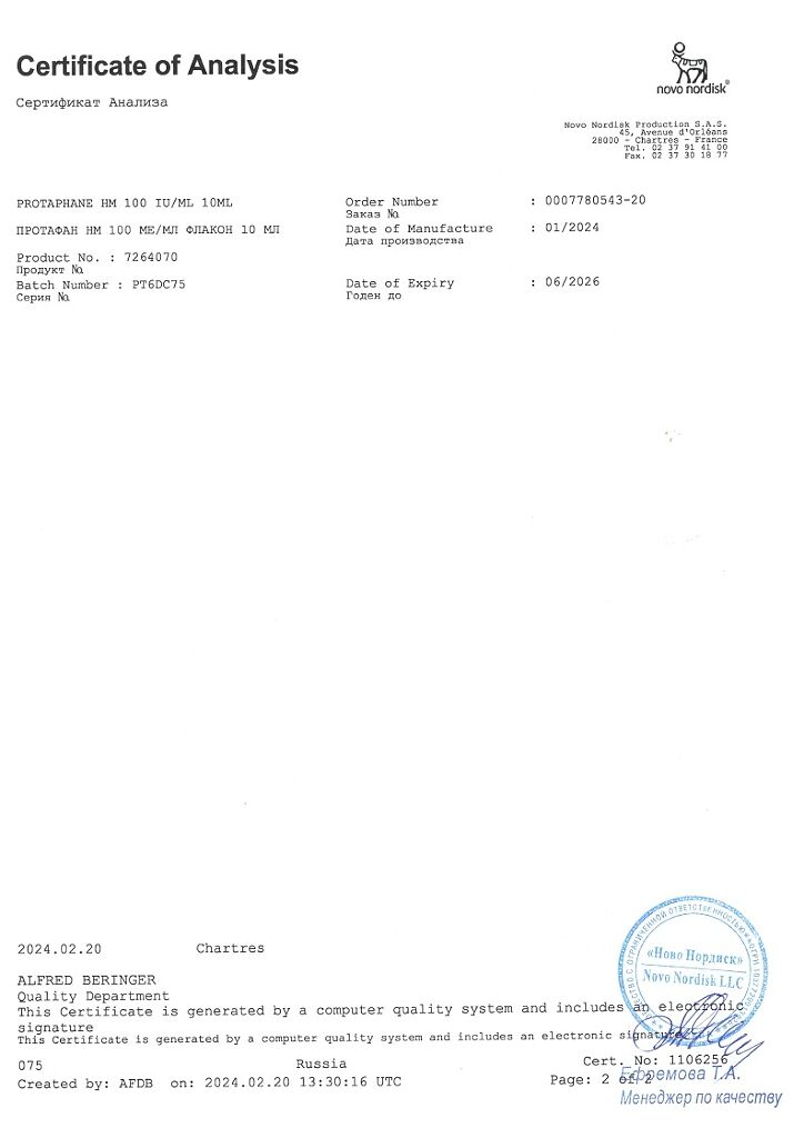 Действующее вещество: Инсулин-изофан человеческий генно-инженерный