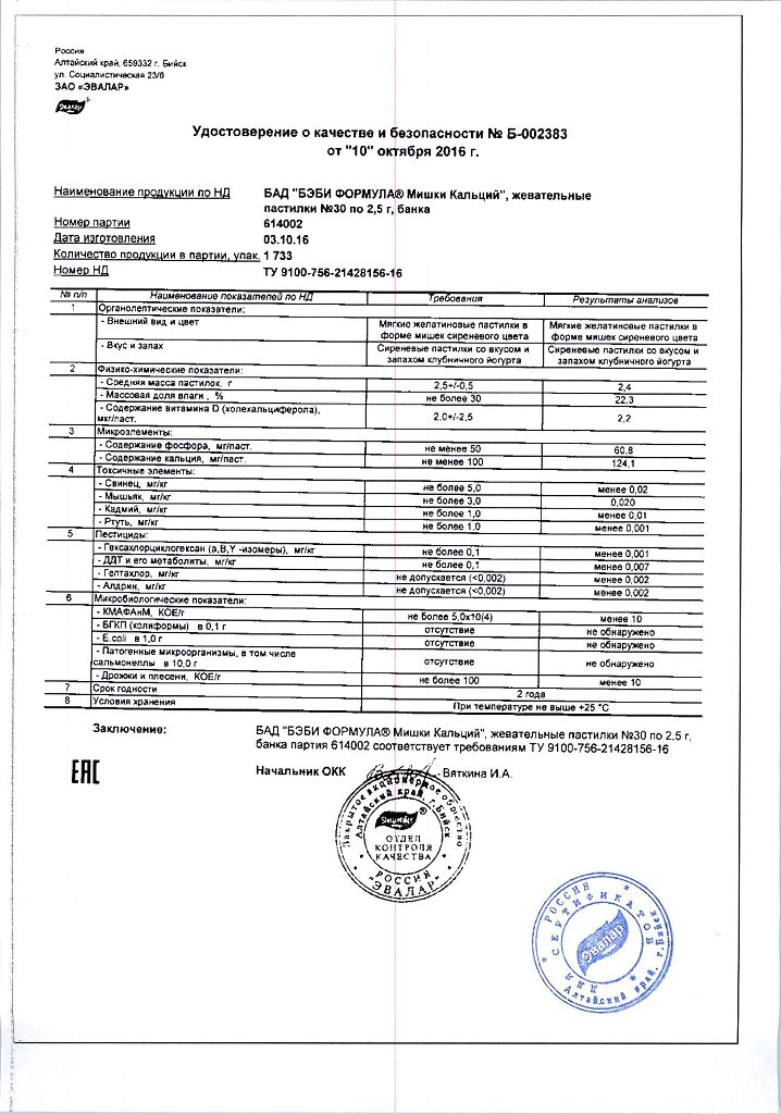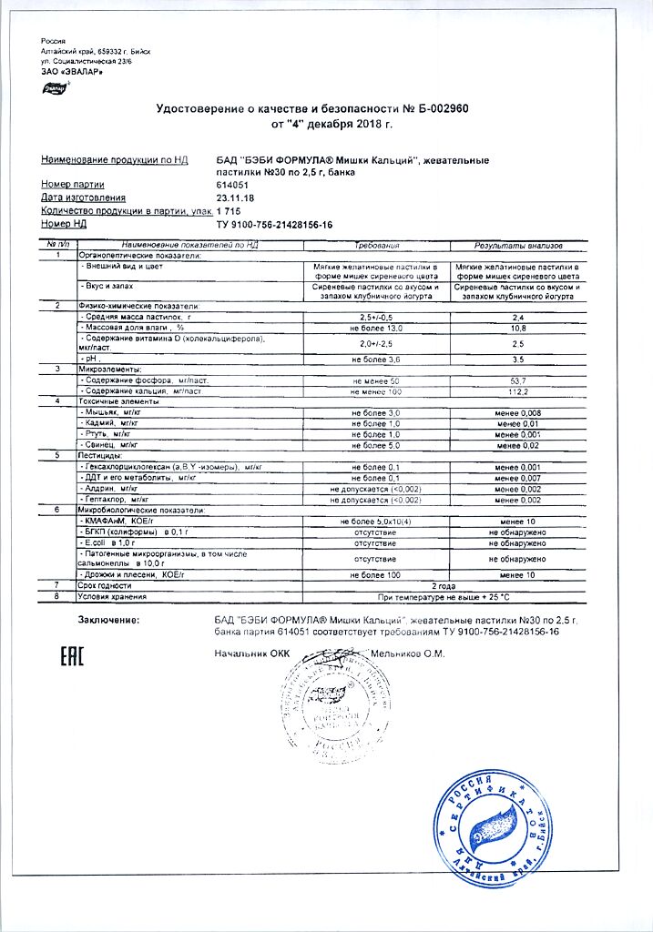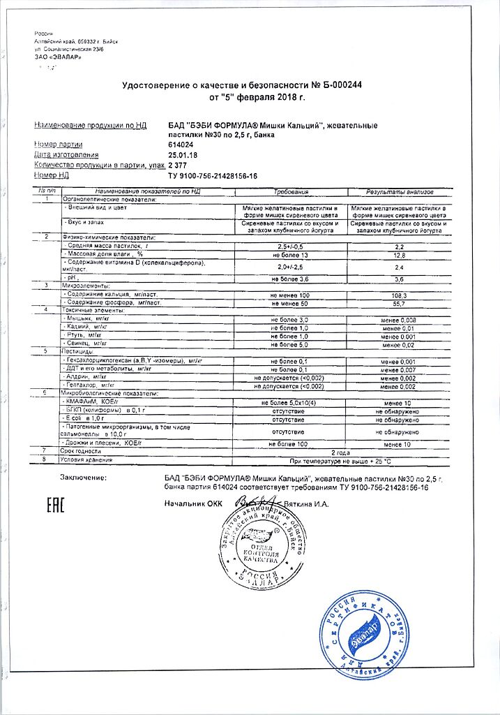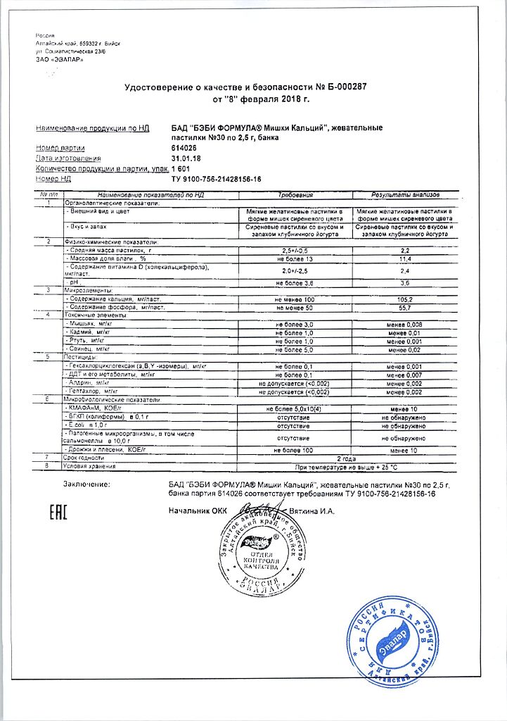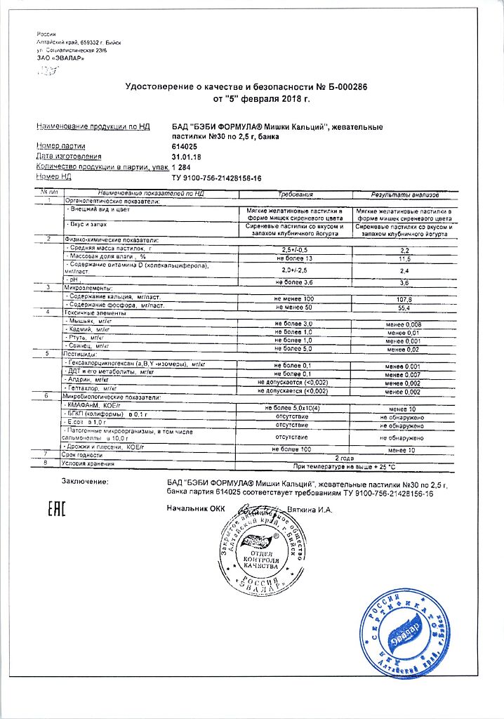 Бэби Формула Мишки Кальций жевательные пастилки по 2,5 г 30 шт: 19 отзывов покупателей и фармацевтов