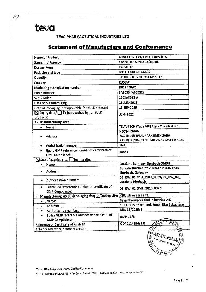 Производитель: Каталент Джермани Эбербах ГмбХ, Германия