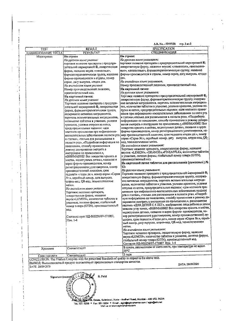 Действующее вещество: Амилметакрезол, Дихлорбензиловый спирт