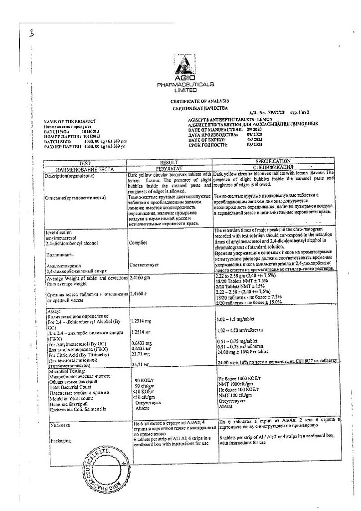 Документы Аджисепт таблетки для рассасывания лимонные 24 шт