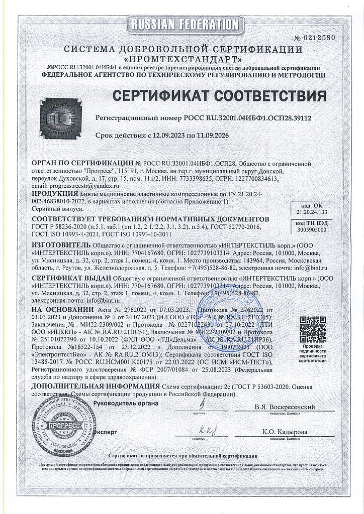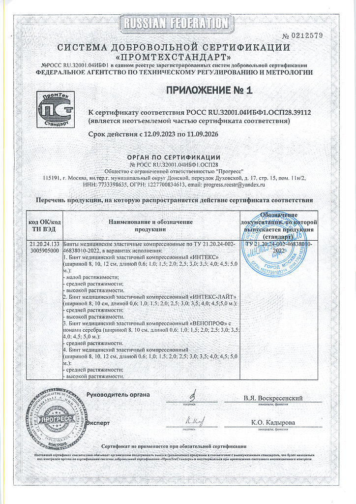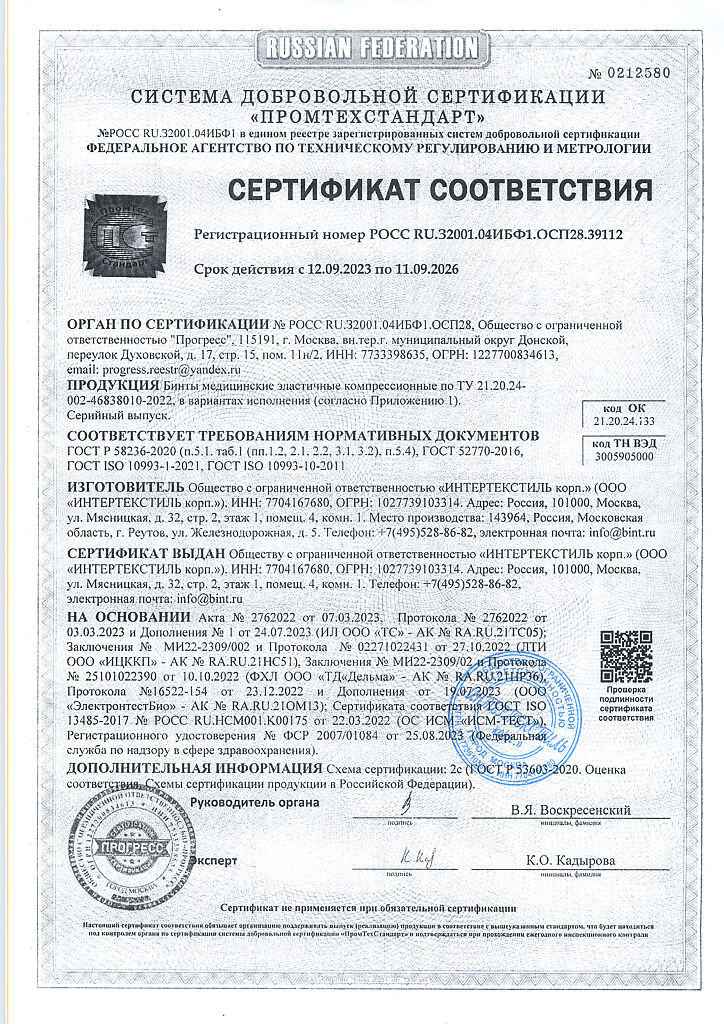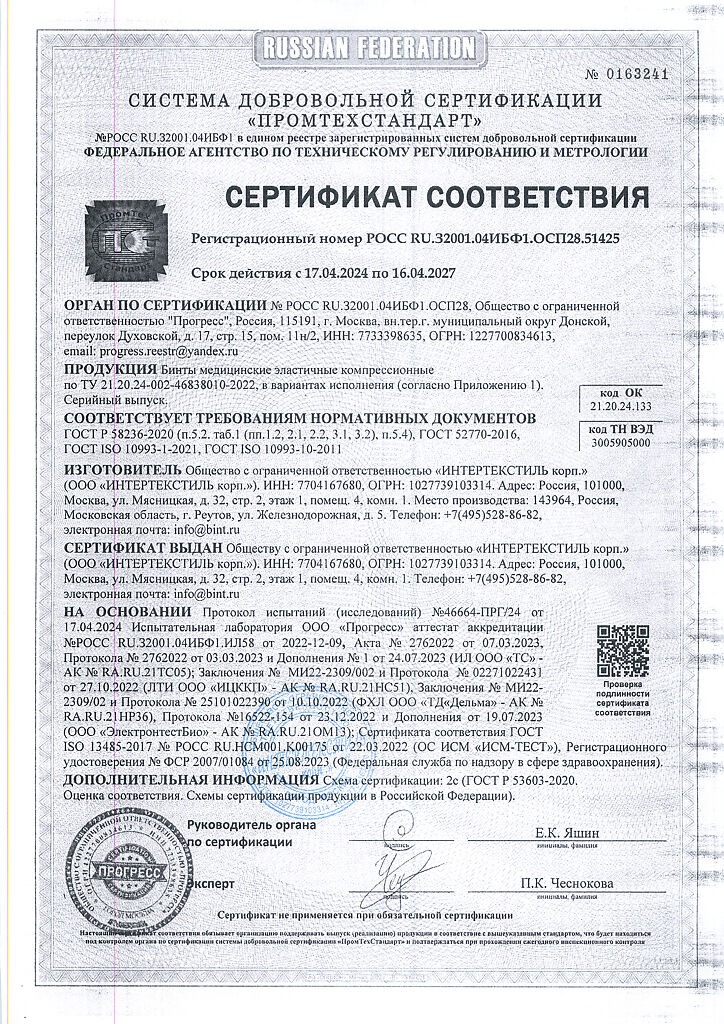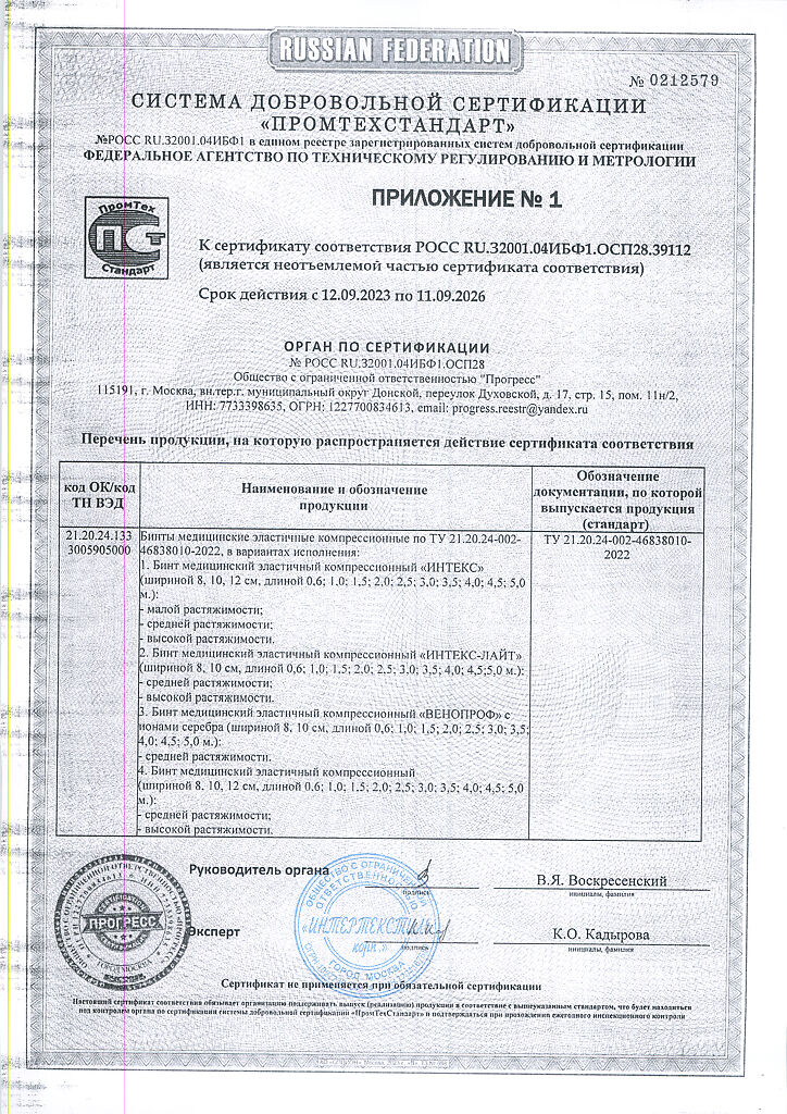 Компрессионные бинты обеспечивают давление на любом участке тела. Во время движения компрессионный эффект бинтов усиливается (активная компрессия), в покое — приходит к начальному, заложенному при наложении бинта. Бинт «ИНТЕКС—ЛАЙТ» средней растяжимости изготовлен из тонких нитей для краткосрочного использования. Тонкое полотно бинта незаметно под одеждой, не препятствует воздухо- и влагообмену кожных покровов. Бинт сантиметров изготавливается из экологически чистых материалов и упакован в комбинированную водонепроницаемую полиэтиленово-бумажную упаковку.