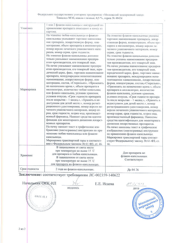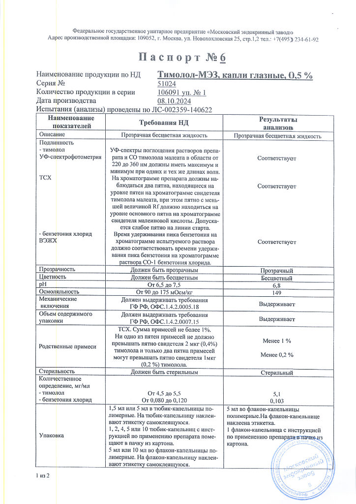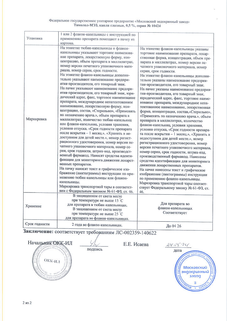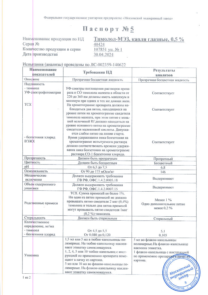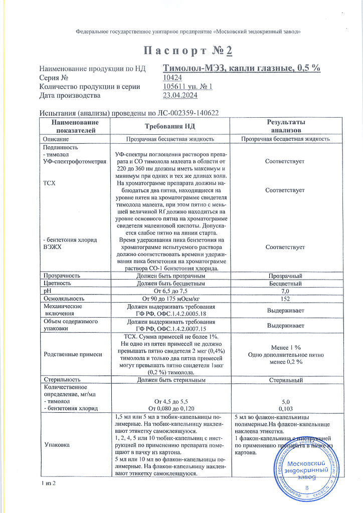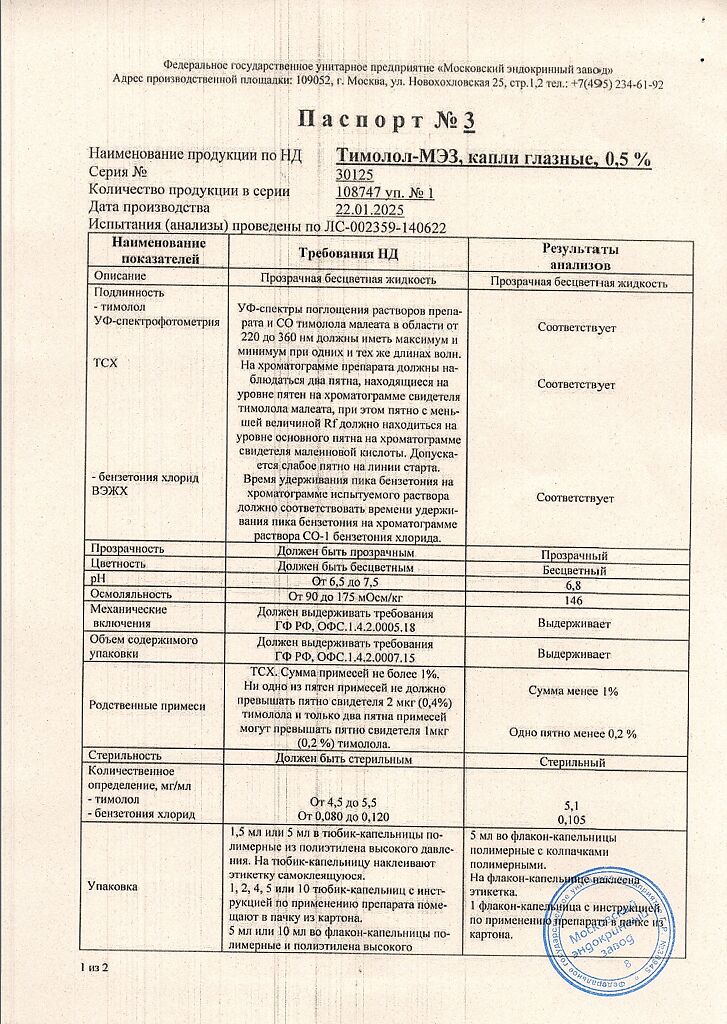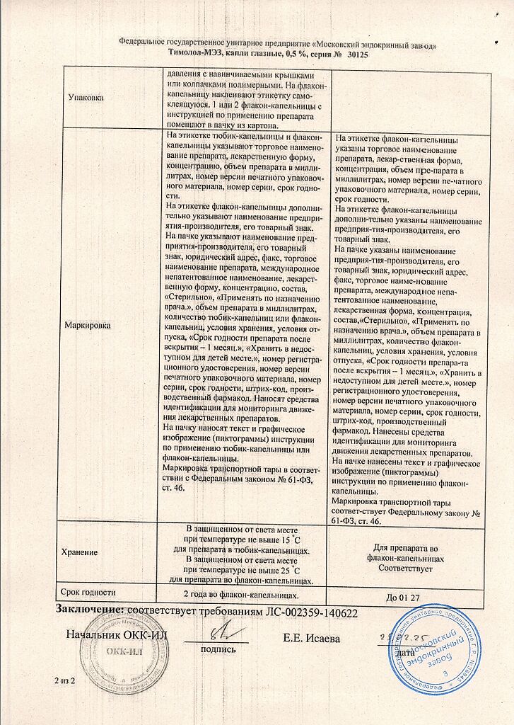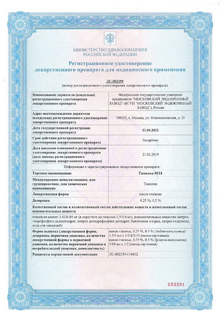 Документы Тимолол-МЭЗ капли глазные 0,5 % 5 мл фл-кап 1 шт