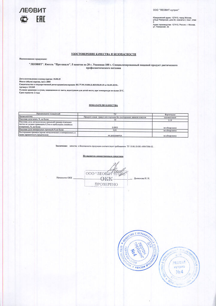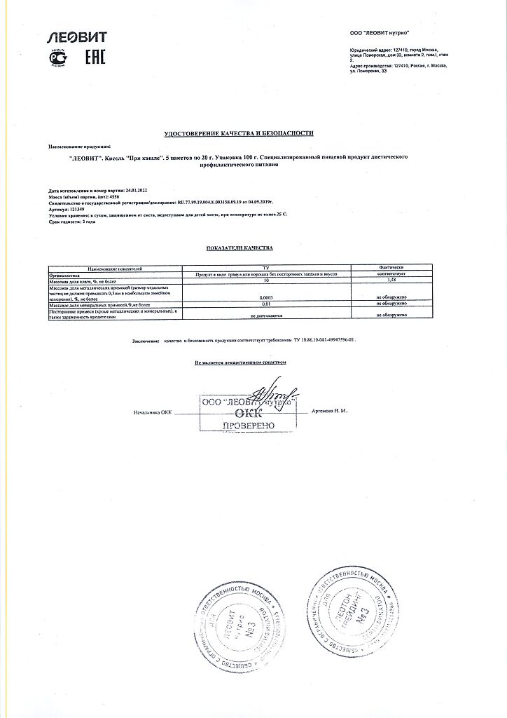 Леовит Кисель при кашле пакеты 20 г 5 шт: 10 отзывов покупателей и фармацевтов