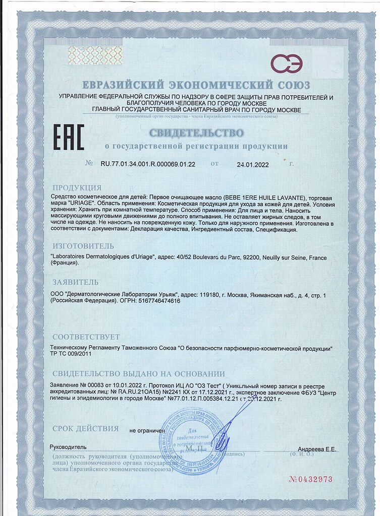 Uriage Bebe Первое масло очищающее пенящееся 500 мл 1 шт: 5 отзывов покупателей и фармацевтов