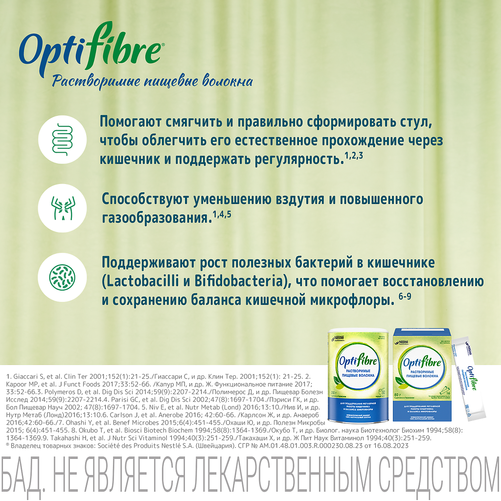 Для поддержания баланса и здоровья Вашего кишечника продолжайте принимать пищевые волокна ОптиФайбер. ОптиФайбер действует физиологично, не раздражает кишечник и не вызывает привыкание. Подходит для регулярного применения.