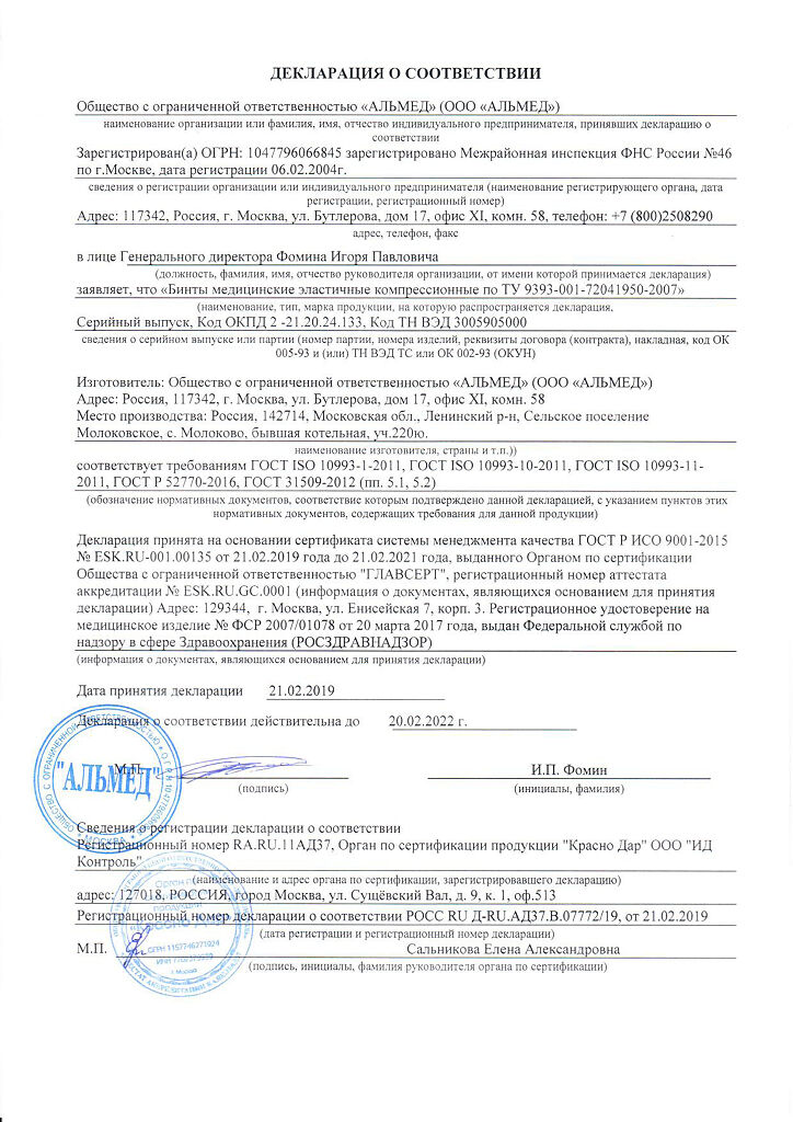 Все варианты Бинт медицинский эластичный компрессионный высокой растяжимости Вариант